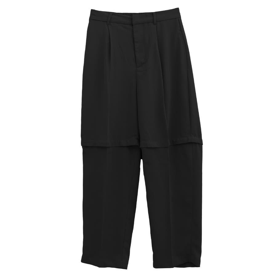 ボタンを外すとハーフパンツとして着用できるセパレートストレートパンツ