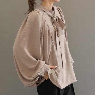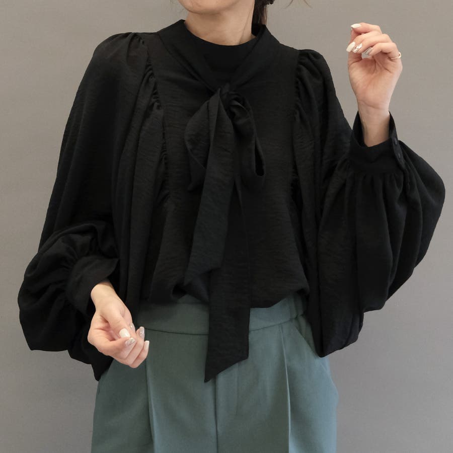 大きめのリボンがアクセント!たっぷりギャザーが目を惹く華やかボウタイブラウス