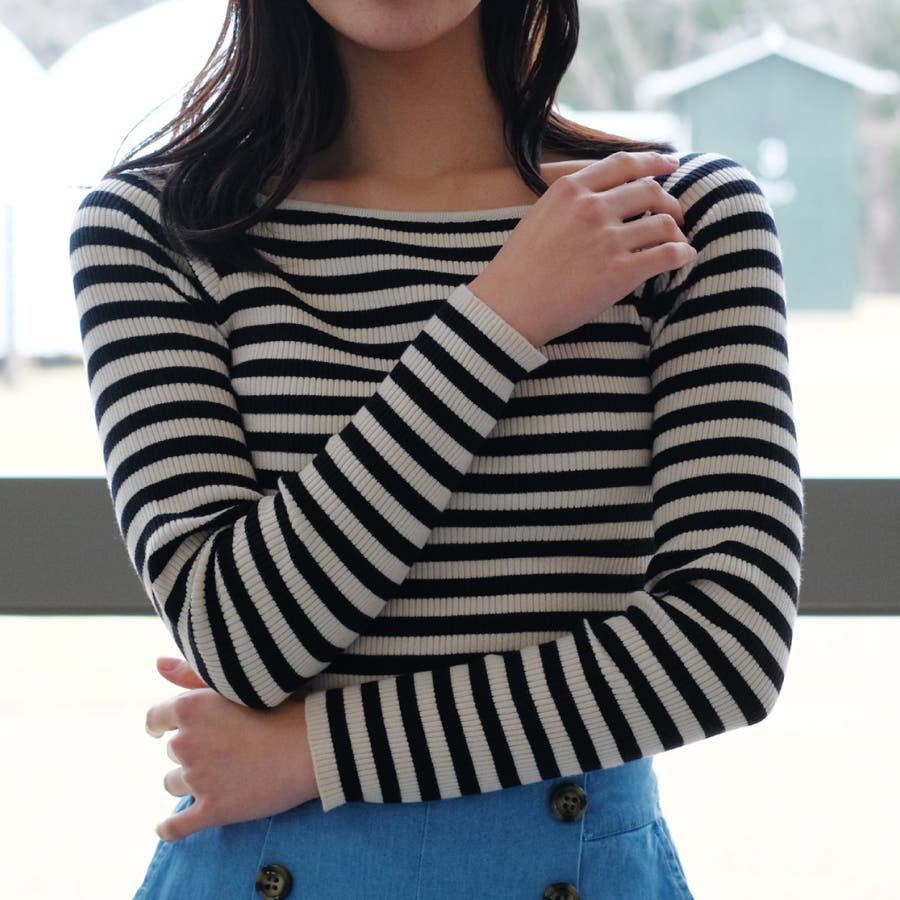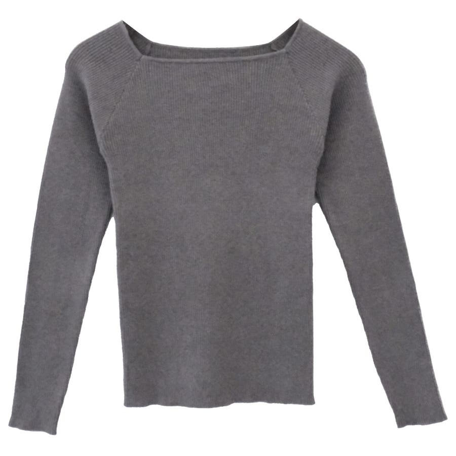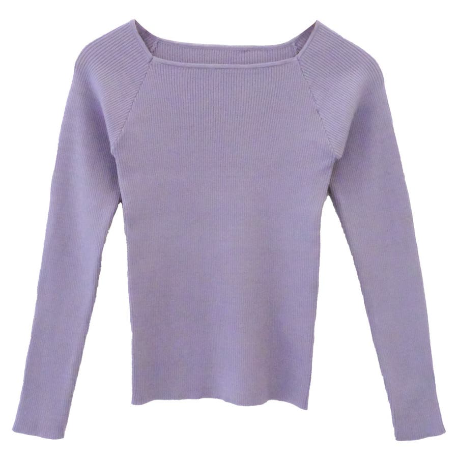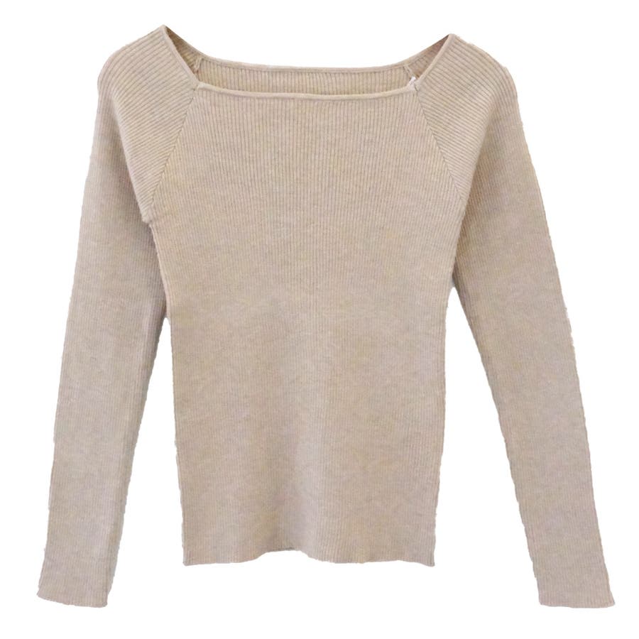 スクエアネックリブニットプルオーバー ニット トップス レディース 春 秋 冬 長袖 M シンプル セーター きれいめ フェミニン 上品 清楚 クラシック 伸縮性 リブ コンパクト