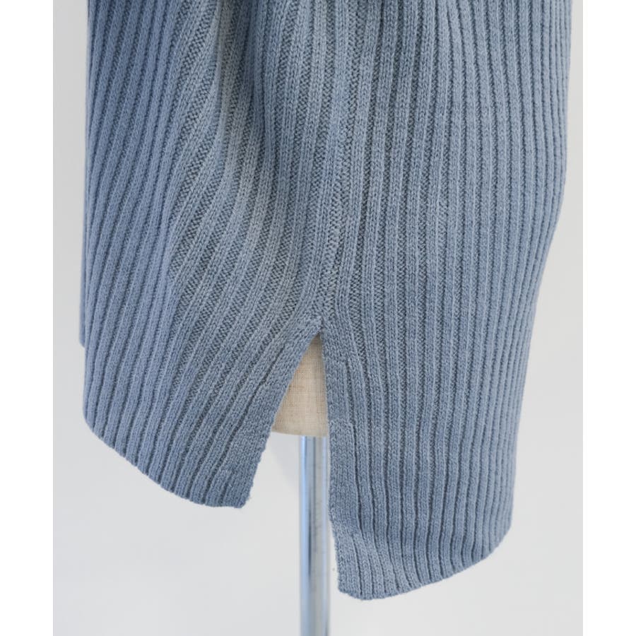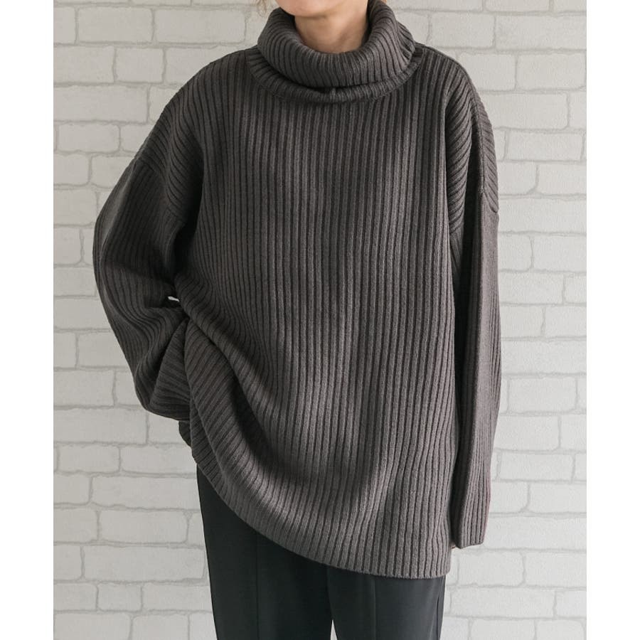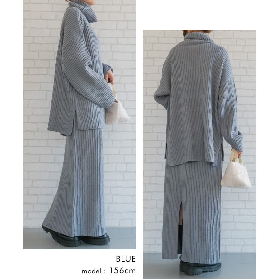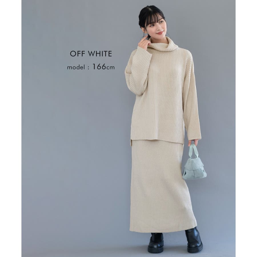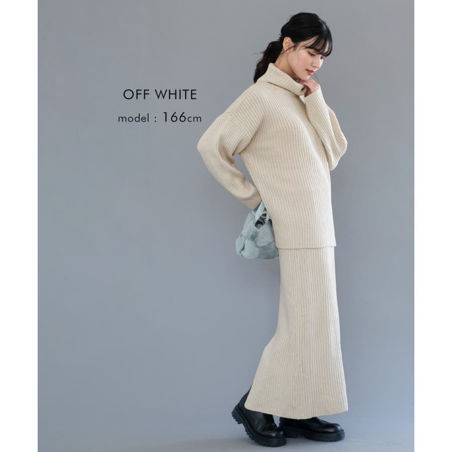 シンプルだけど一枚で様になるリブニットタートルロングプルオーバー セットアップ可