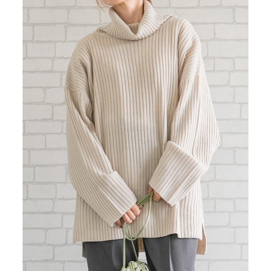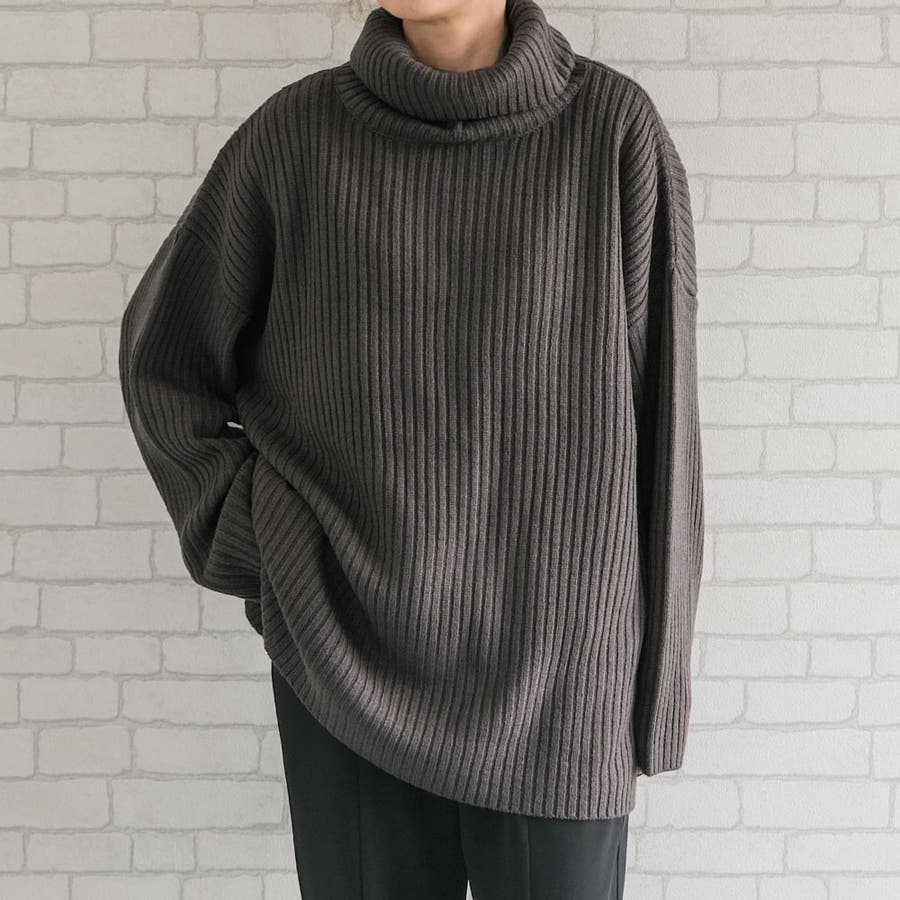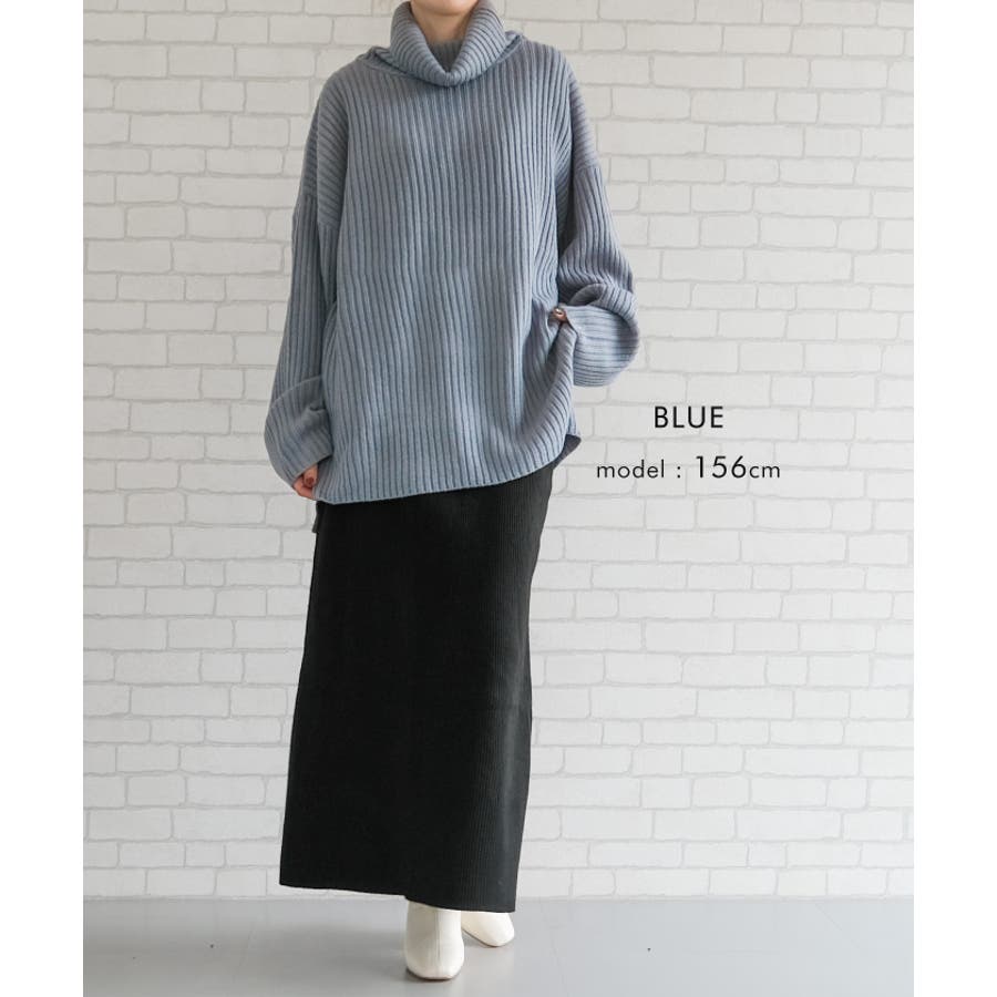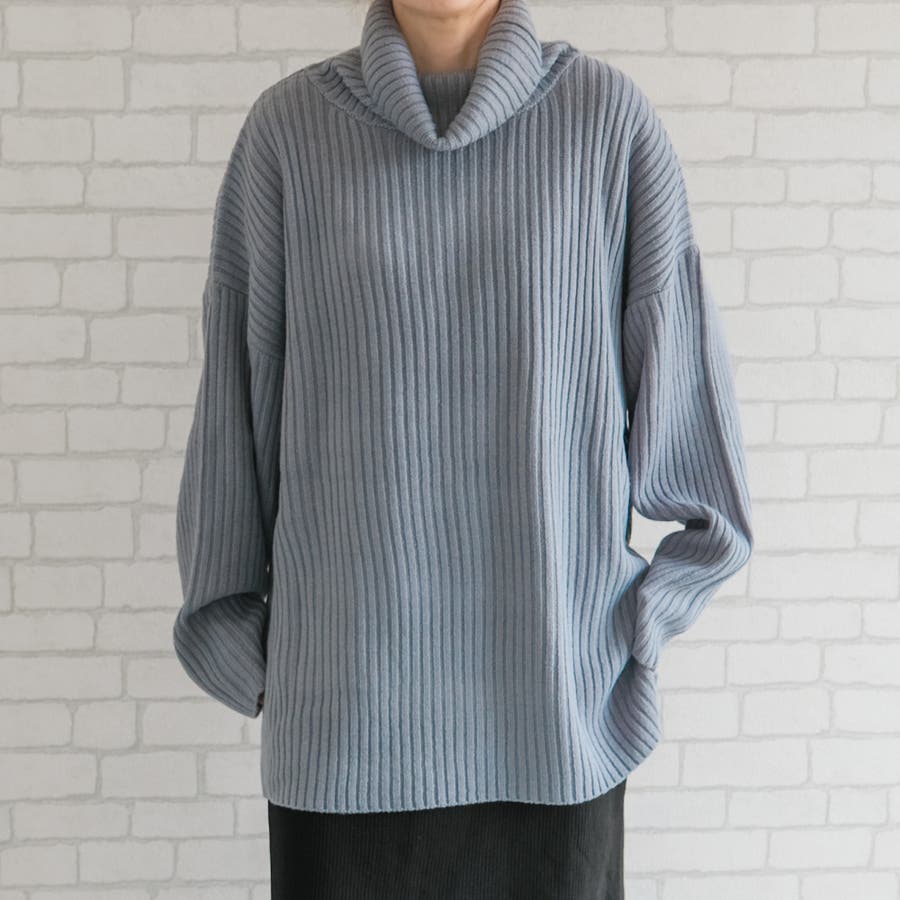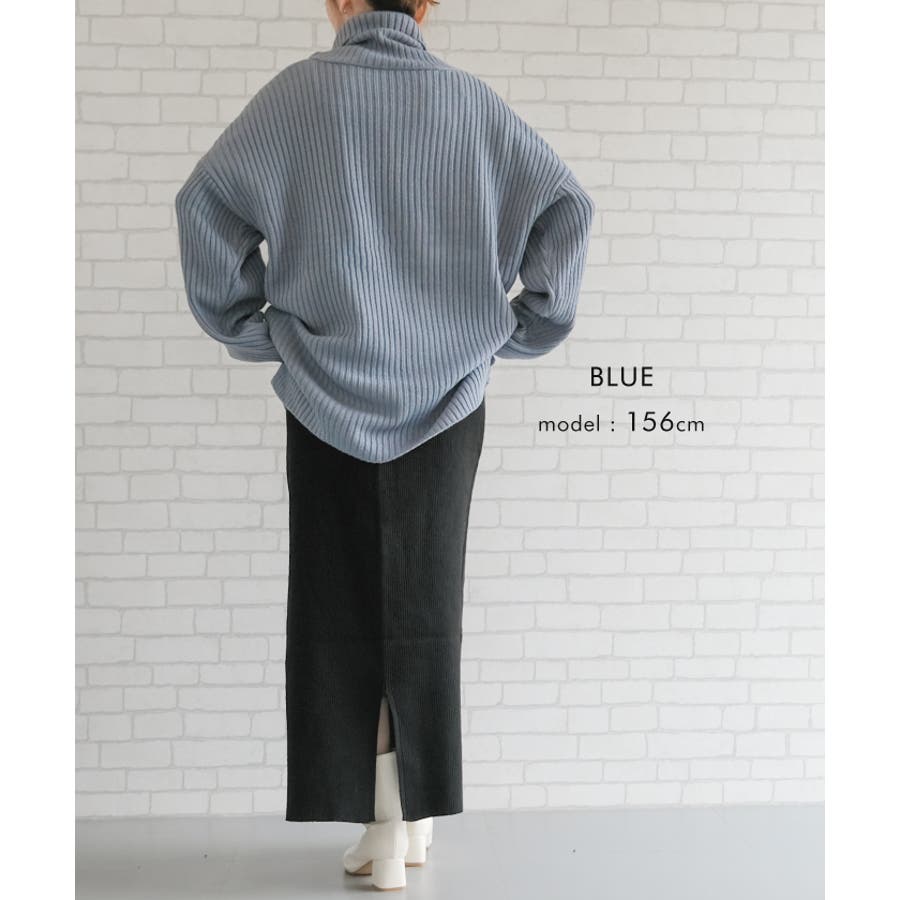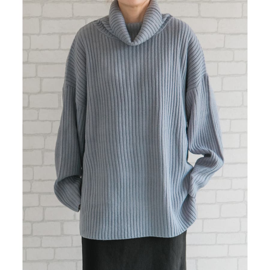 リブニットタートルロングプルオーバー トップス ニット レディース 秋 冬 長袖 オフタートル タートルネック ハイネック オーバーサイズ ボリュームニット ざっくりニット セーター 小顔効果 ゆったり リラックス ルーズ ボリューム袖 バルーン袖 袖コンシャス 大きめ BIG 大きいサイズ ビッグシルエット 華奢見せ 細見え スタイルアップ シンプル カジュアル ドロップショルダー