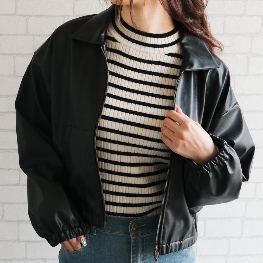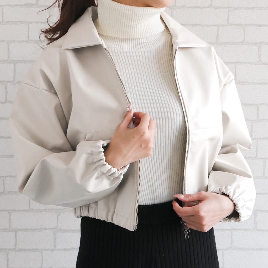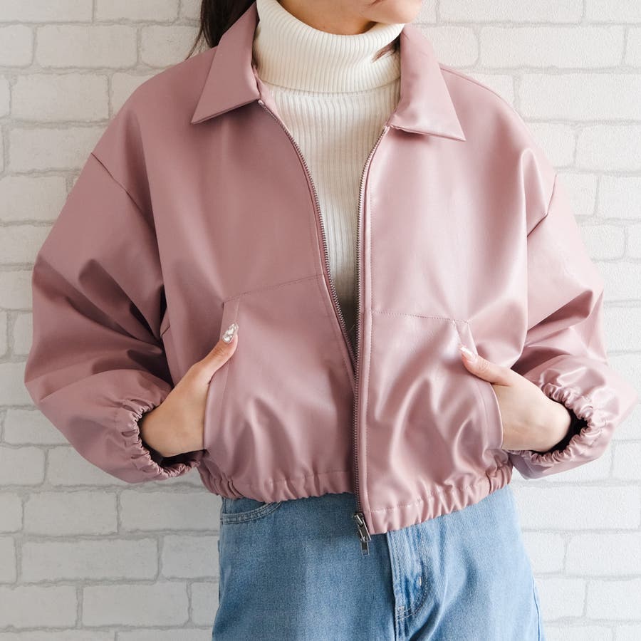 フェイクレザーの素材感がクールなニュアンスをプラス!ショート丈フェイクレザージャ…