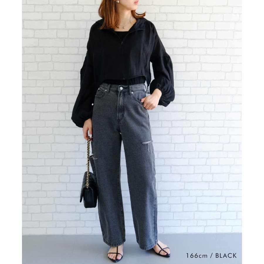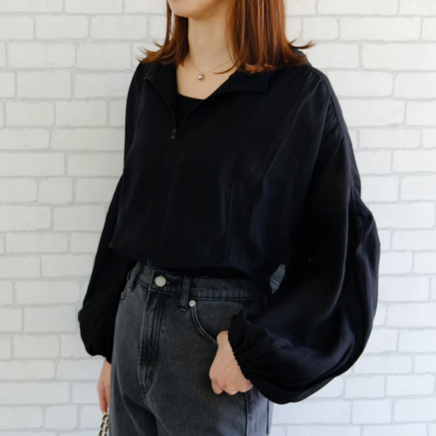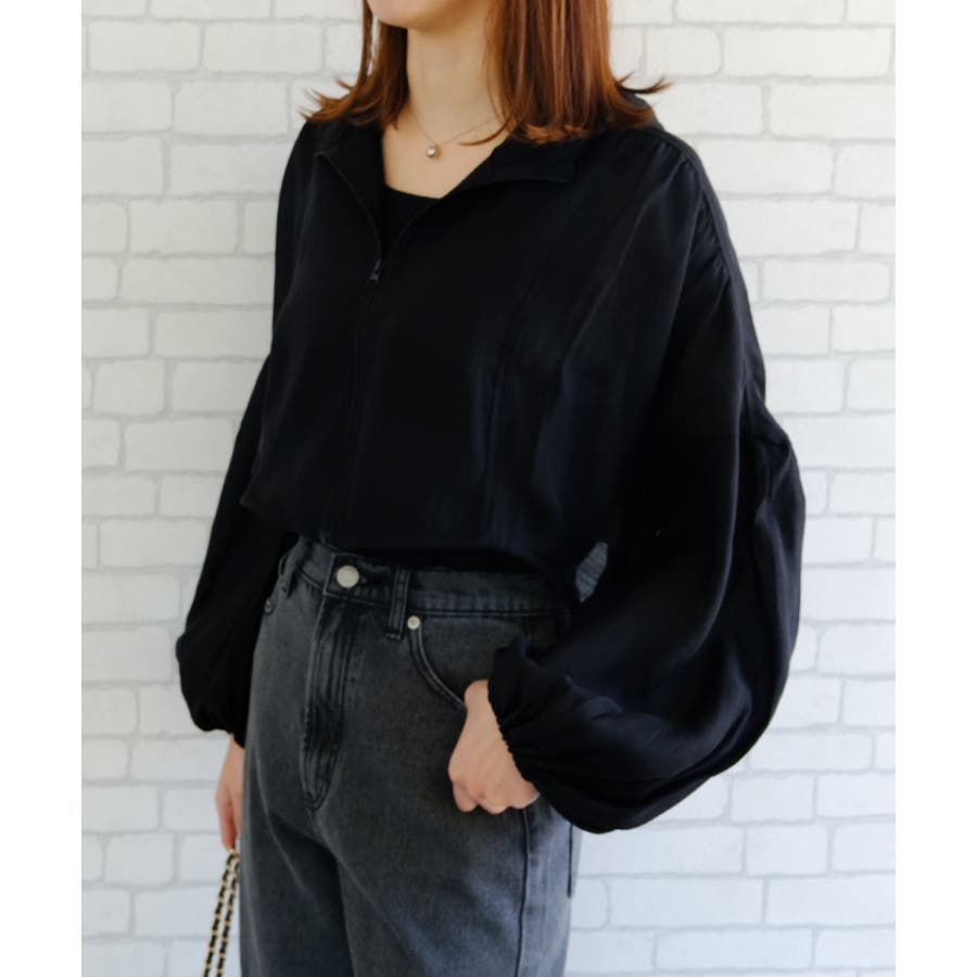【ブラック】こなれ感のあるシアーギャザーショート丈ブルゾン
