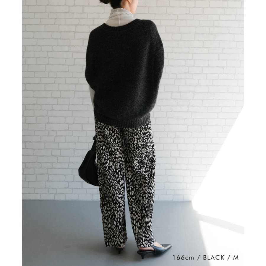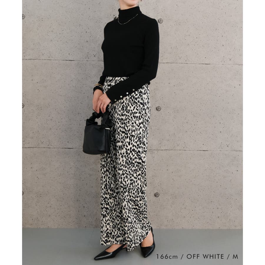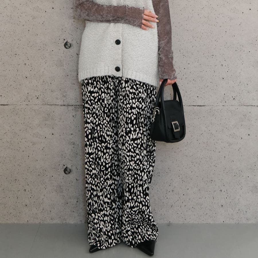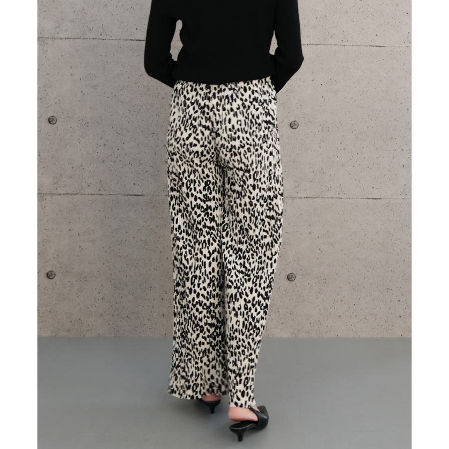 やわらかく、落ち感のあるカットソー生地のレオパード柄プリーツパンツ