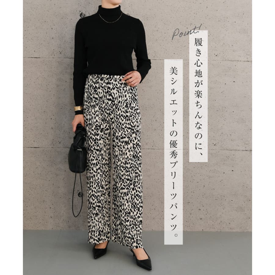 レオパード柄プリーツパンツ 柄プリーツパンツ レディース 春 夏 秋 M L ボトムス パンツ プリーツパンツ ロング丈 ウエストゴム イージーパンツ ガウチョパンツ スカンツ 美ライン きれいめ フェミニン 大人女子 大人可愛い 大人 上品 清楚 無地 体型カバー ストレスフリー ルームウエア ワンマイルウエア 部屋着 リラックスパンツ イージーパンツ リラックス リラクシング 楽ちん レイヤード アニマル柄
