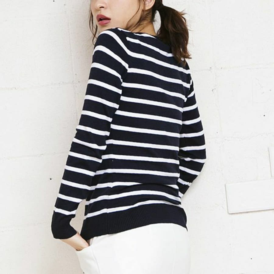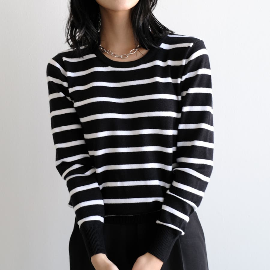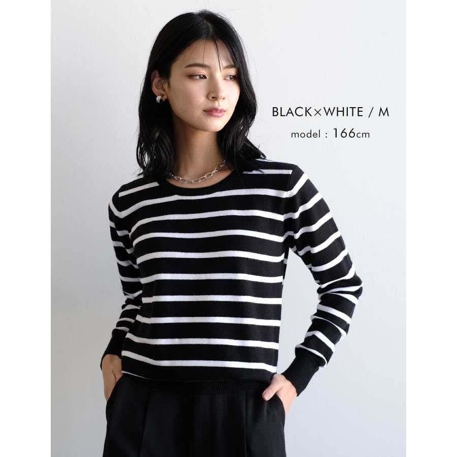 ニット トップス セーター ボーダー 無地 シンプル 春 秋 冬 M L Vネック Uネック タートルネック ラウンドネック クルーネック丸首洗える伸縮性レディース