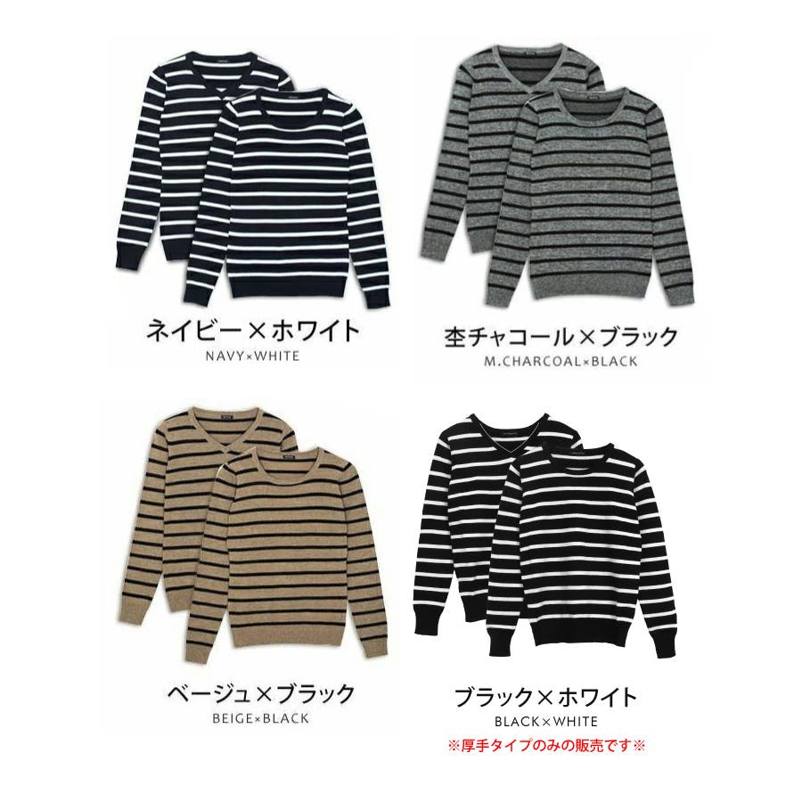 | カラー | 無地:ブラック / 無地:ホワイト / 無地:ライトグレー / 無地:ネイビー / 無地:ピンク / ボーダーホワイト / ボーダーネイビー / ボーダー杢チャコール / ボーダーピンクベージュ / ボーダーベージュ / 無地:ベージュ / 厚手:ブラック / 厚手:ネイビー |