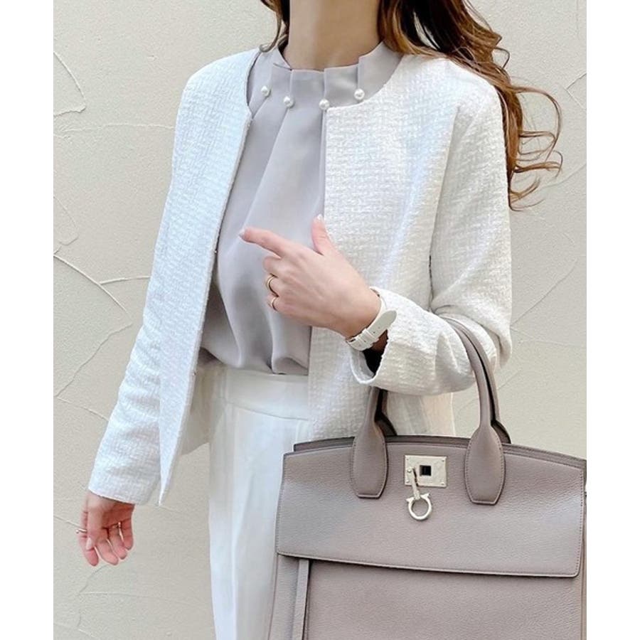 白いジャケットを探していて、サイズもピッタリでデザインも気に入りました!さん (40代 / 女性 / 身長155~160cm / 体重50~54kg)購入アイテム: サイズ Lカラー オフホワイトいつものトップスサイズ:Lサイズ感:ぴったり - 卒業式
