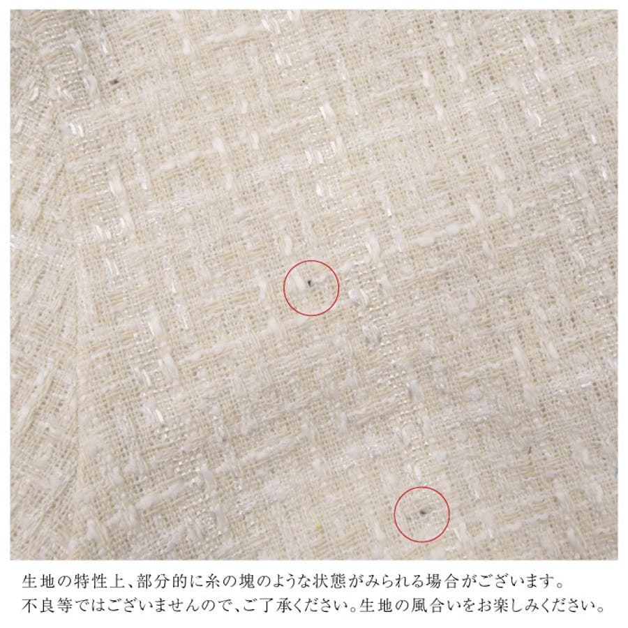 ・伸縮性なし・表地はツイード素材・裏地付き・開閉はフック式