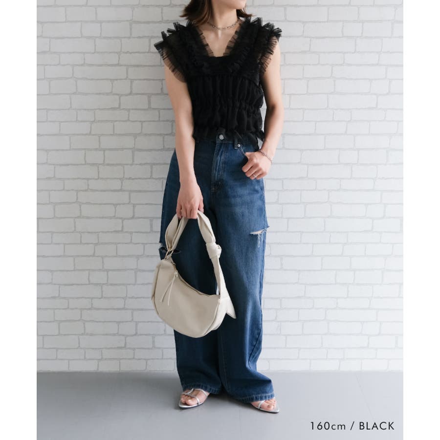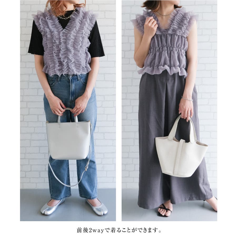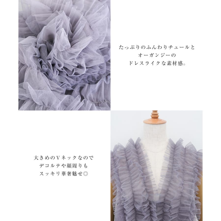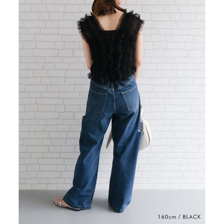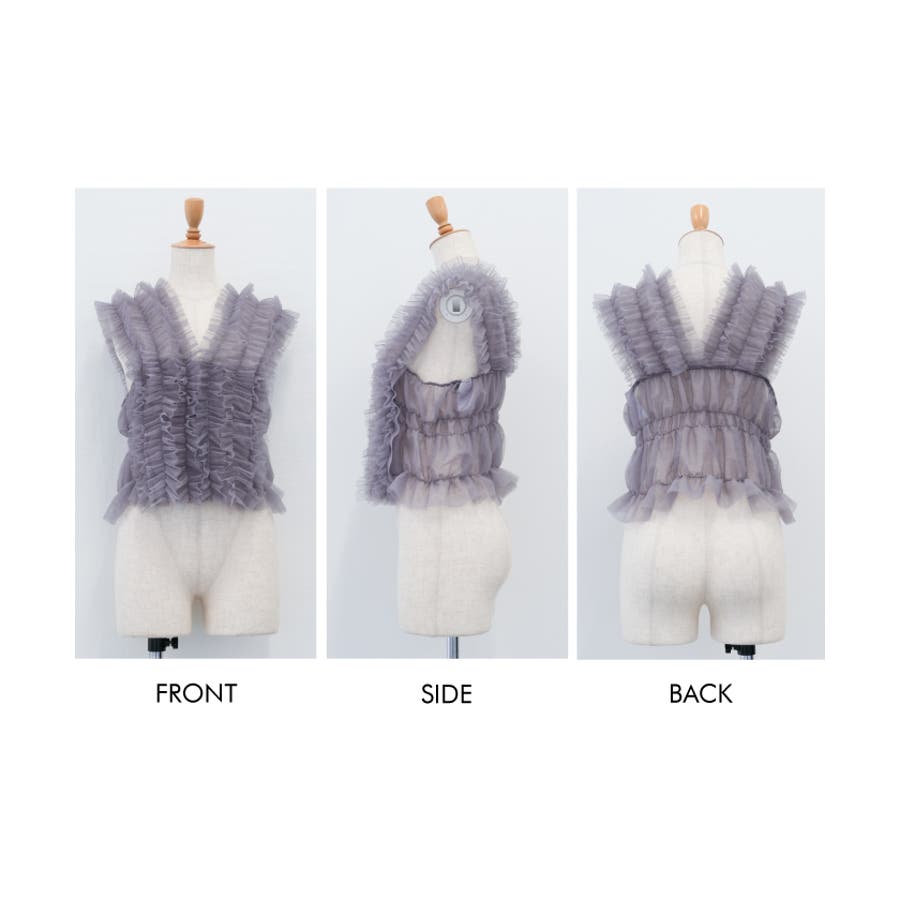 シアー感のある繊細なチュールを重ねたチュールフリルタンクビスチェ