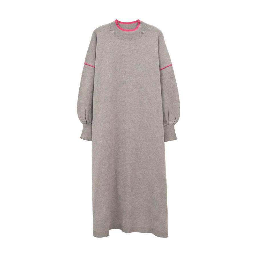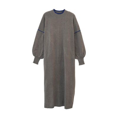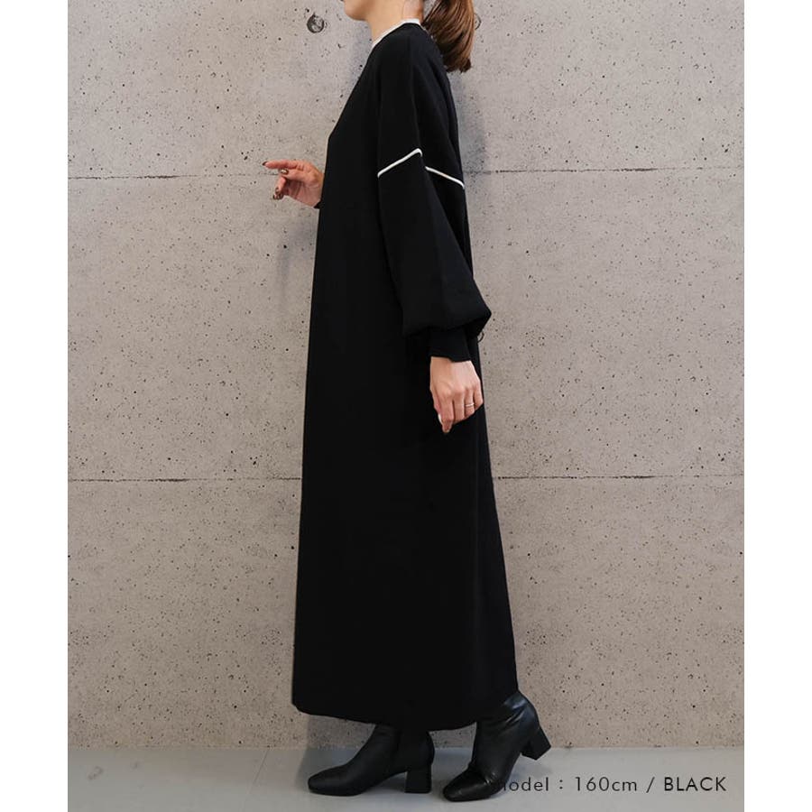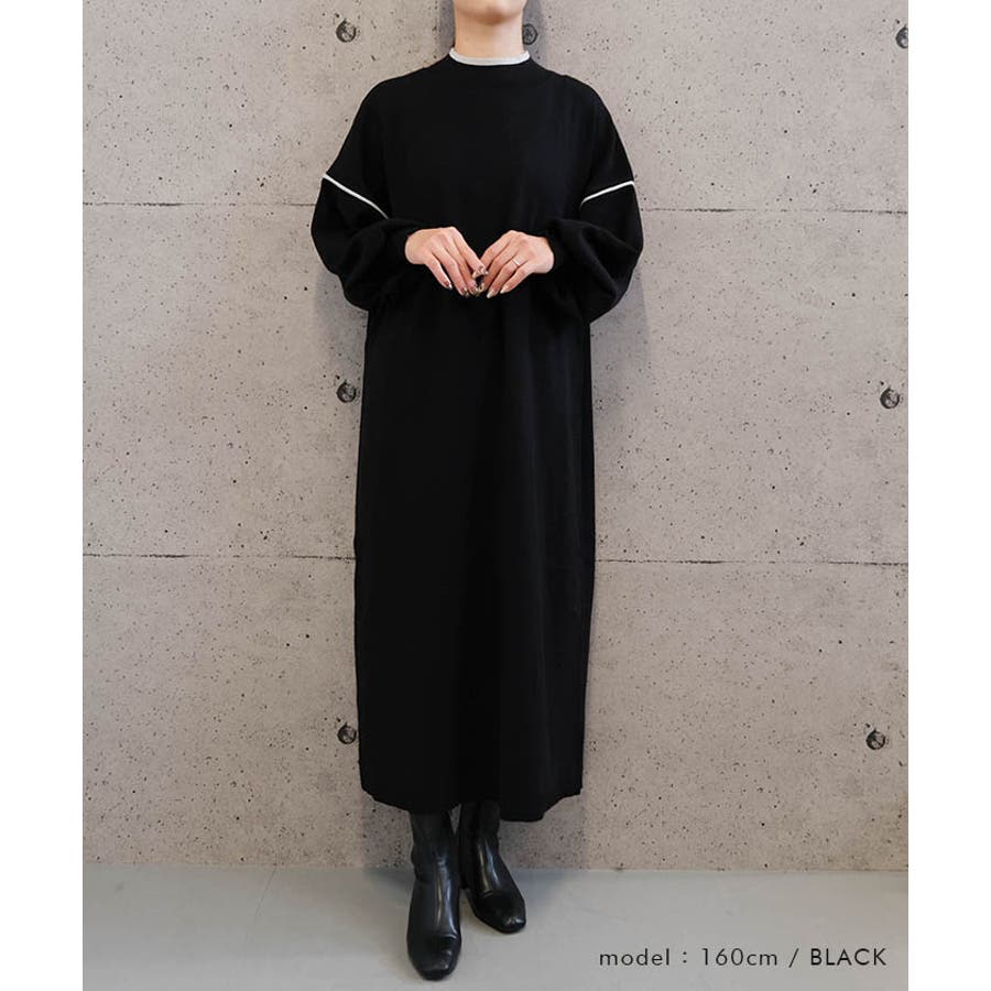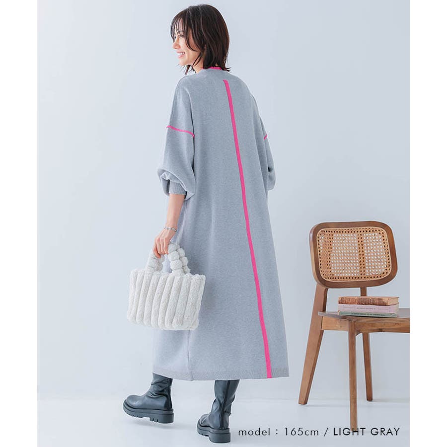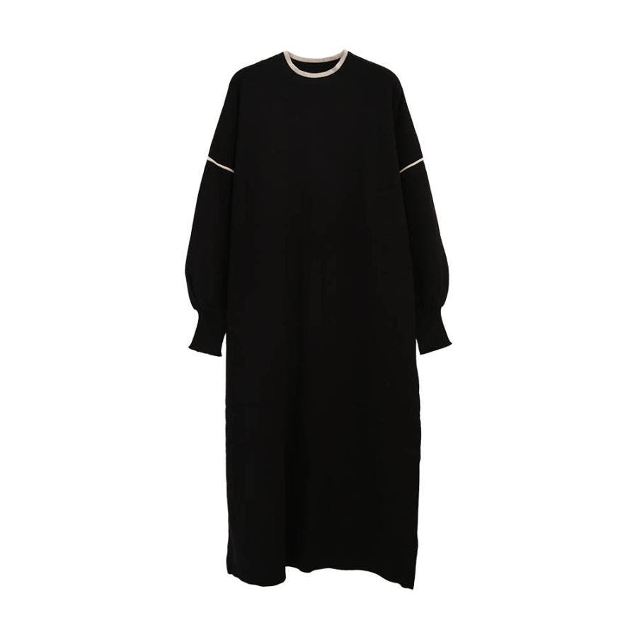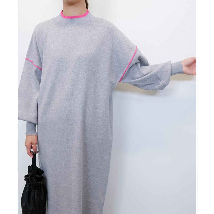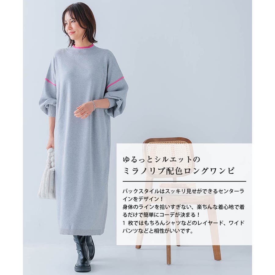 ゆるっとシルエットのミラノリブ配色ロングワンピース。