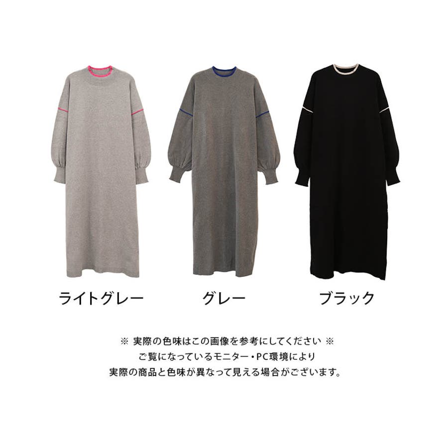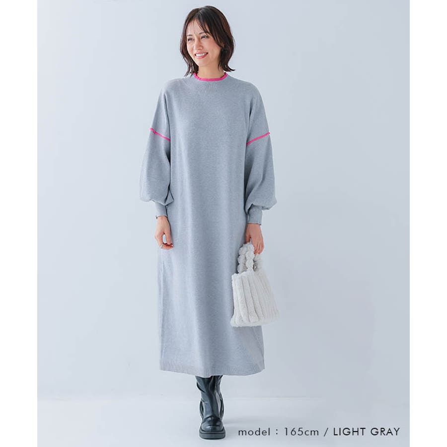 ミラノリブ配色ロングワンピース ワンピース レディース 秋 冬 M 長袖 ロングワンピース ロング丈 大きいサイズ 体型カバー きれいめ カジュアル 大人 リラックス リラクシング ワンマイルウェア ルームウェア レイヤード