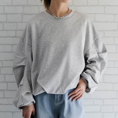 袖タックバルーントップス レディース 秋 冬 長袖 プルオーバー 無地 カジュアル シンプル リラックス リラクシング ルームウェア 部屋着 テレワーク リモートワーク コンパクト スエット レイヤード 重ね着