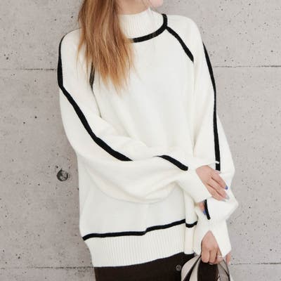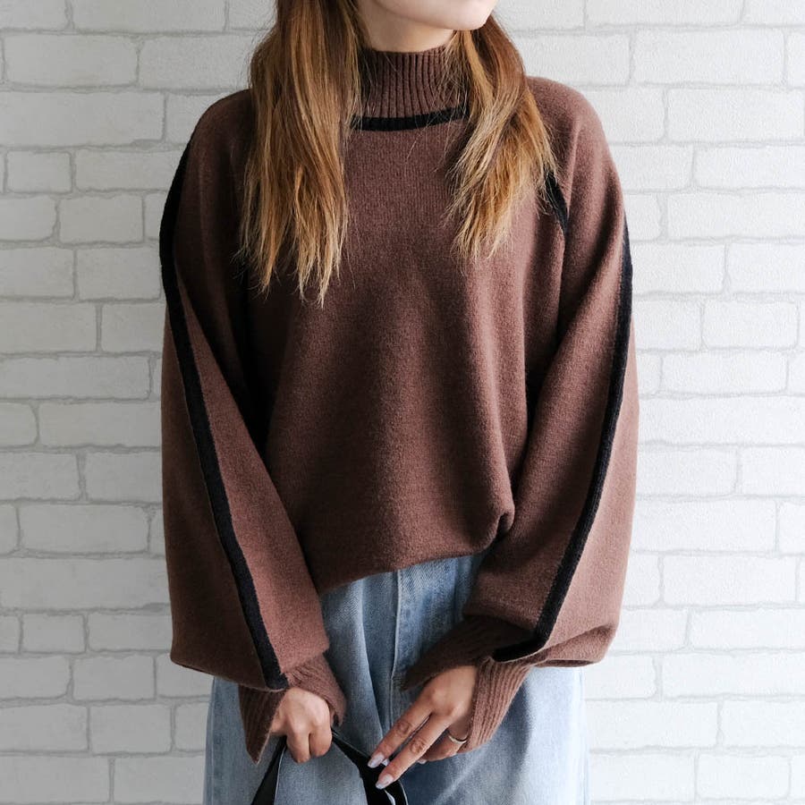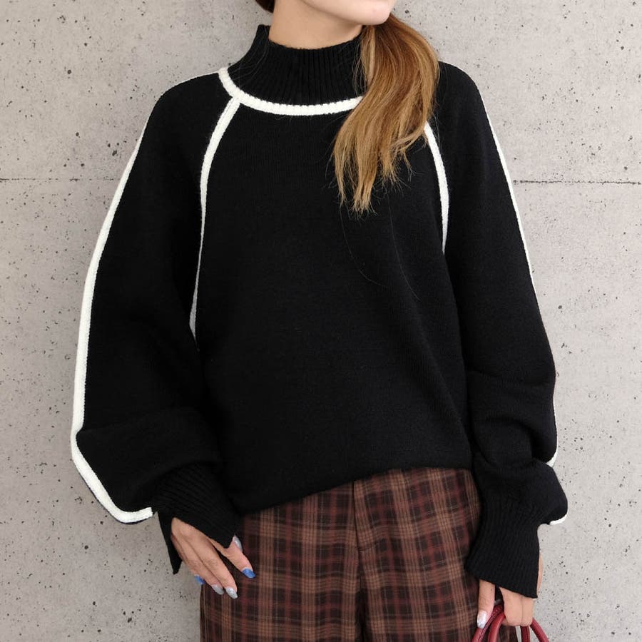 配色の切り替えデザインがアクセント!カシミアタッチ配色ニットトップス
