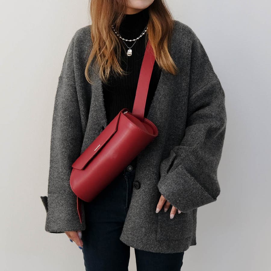 ノーカラーなのでタートルネックやハイネックのトップスとも好相性。