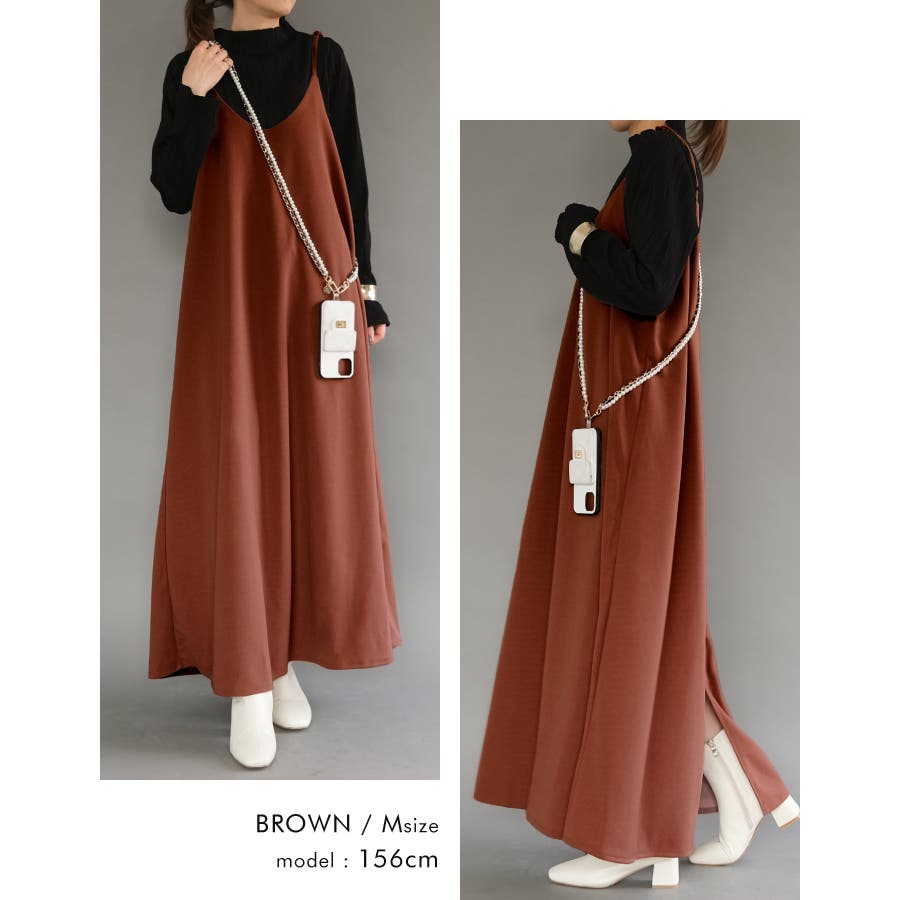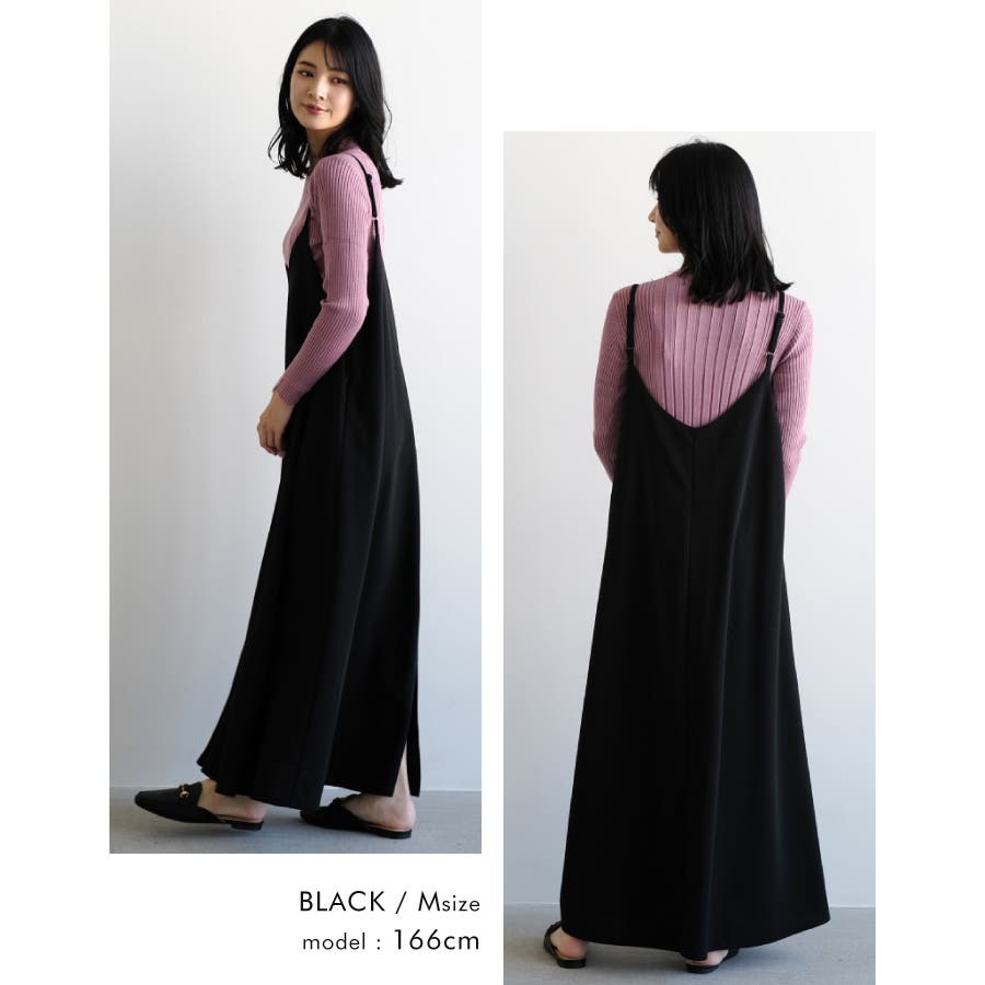 フレアシルエットキャミワンピース キャミワンピ レディース 春 夏 秋 M L ロング丈 マキシ丈 ジャンスカ サロペット ジャンパースカート オールインワン ロングスカート マキシスカート 無地 シンプル 大人 お洒落 おしゃれ かっこいい レイヤード 重ね着 カジュアル 調節 アジャスター Aライン バックスリット イージーケア シワになりにくい