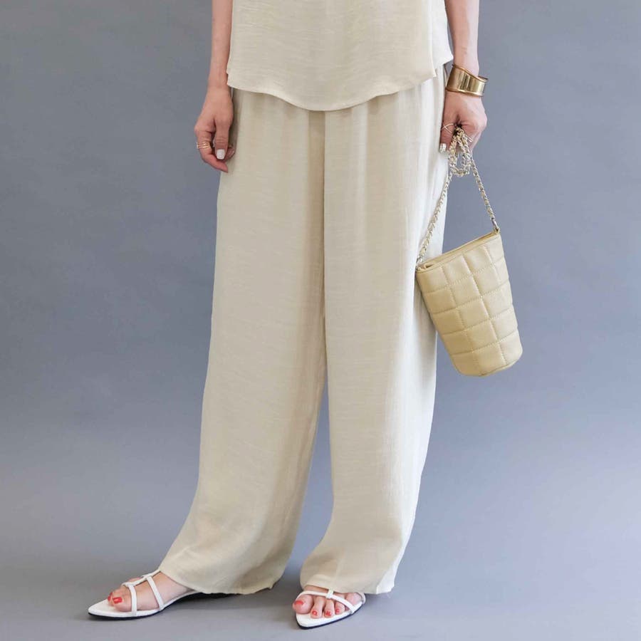 柔らかな履き心地で楽ちん、スラブ楊柳ストレートパンツ