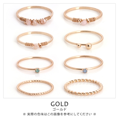 スタイリング自在な華奢デザインのリングが8個セットになったお得なアイテム