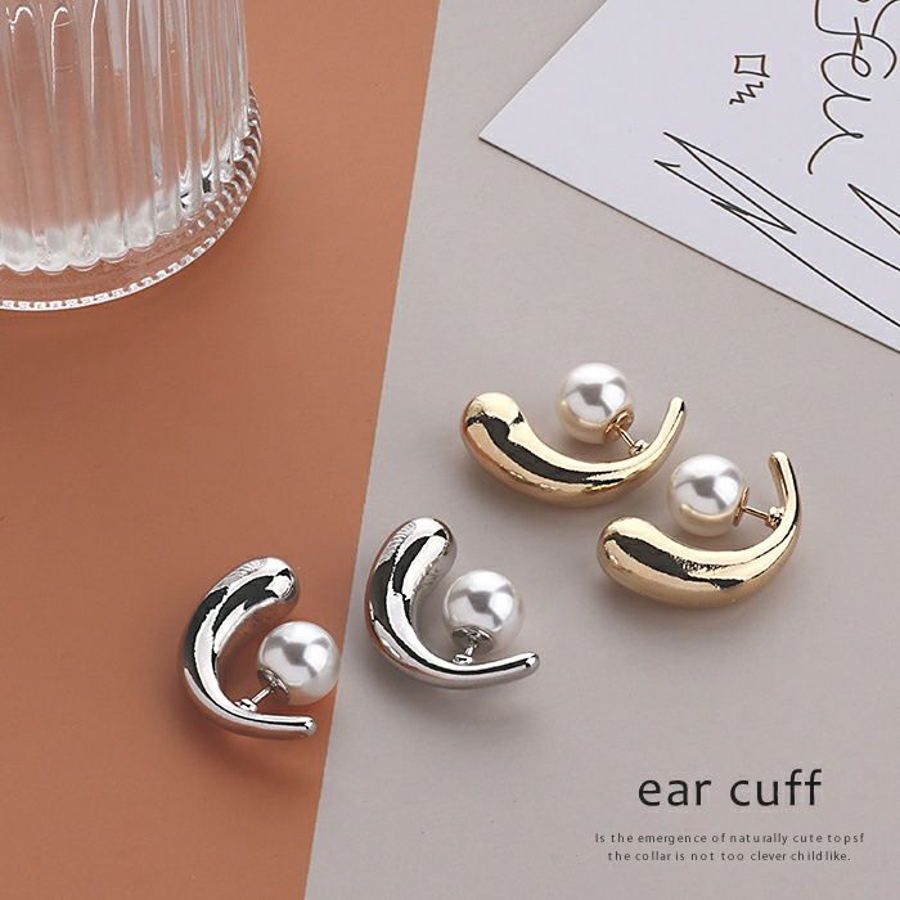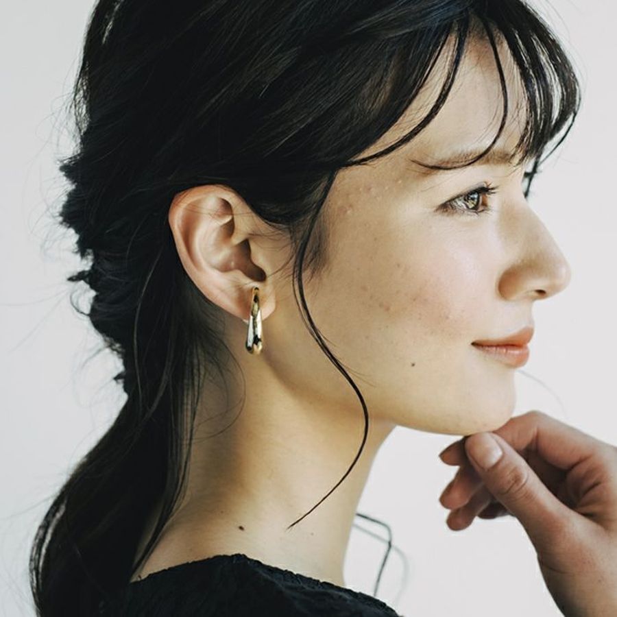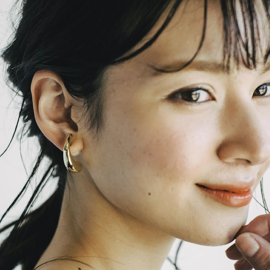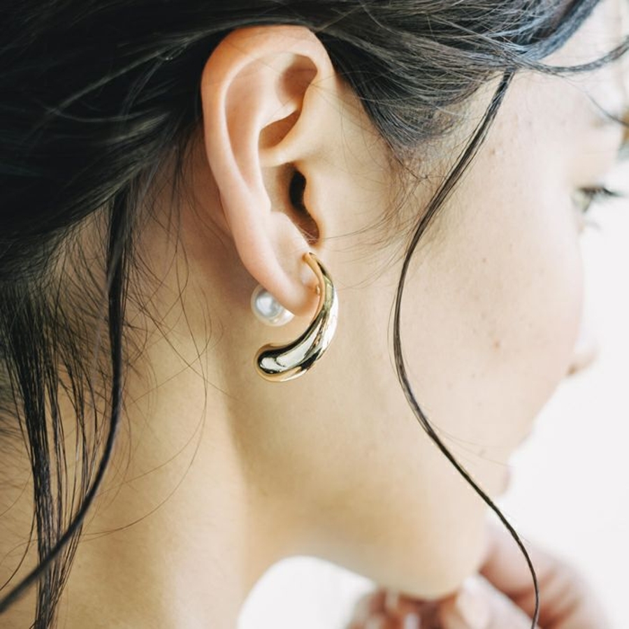 ぽってりとしたフォルムのモチーフと一粒パールをあしらった