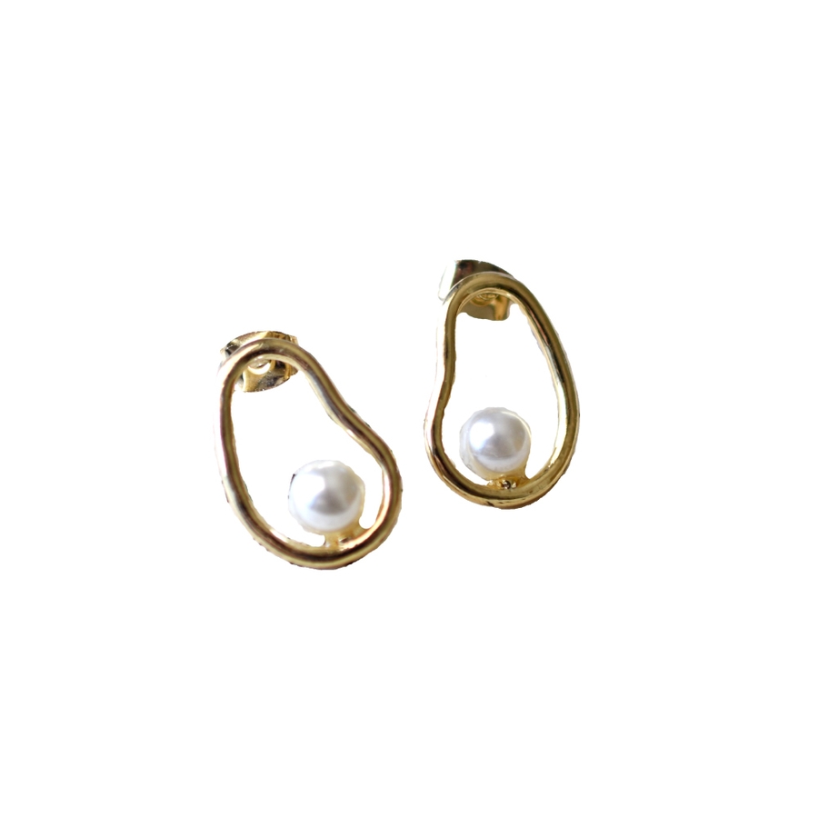 顔周りを明るくしてくれるゴールド×パールのピアス。