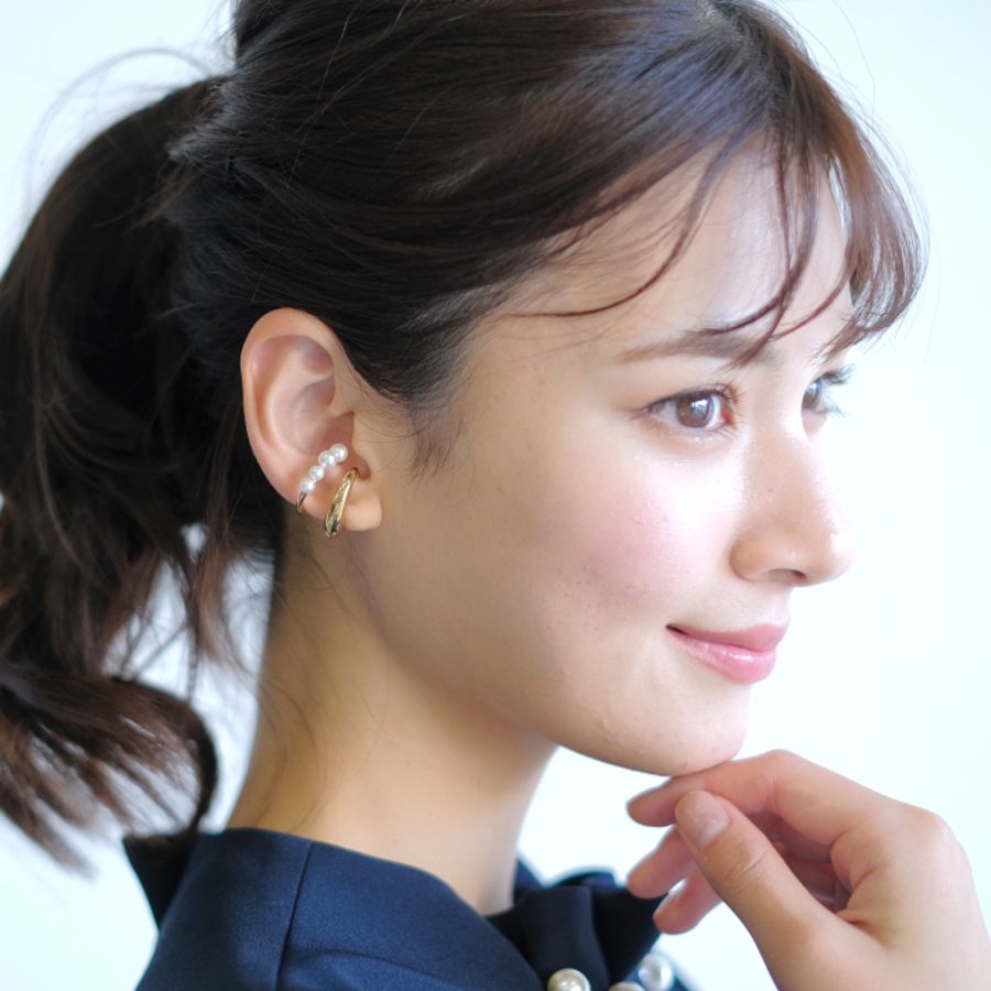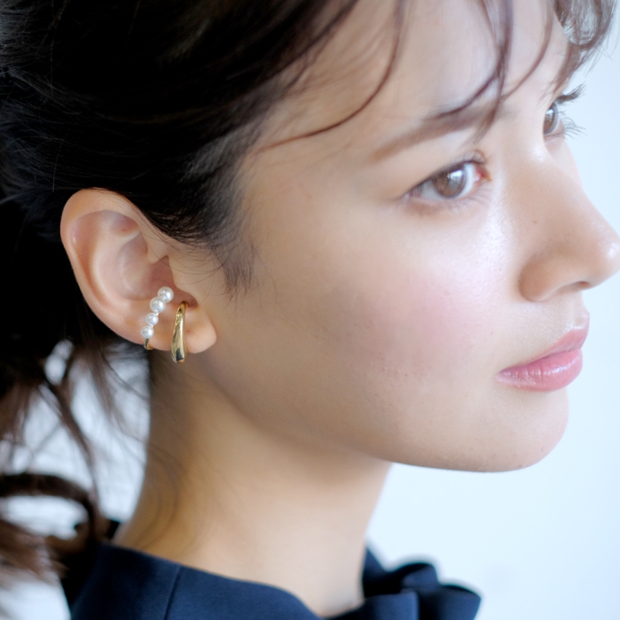 ぽってりシルエットが可愛い!2連風パールイヤーカフ