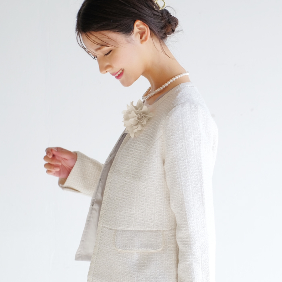 ふわりと開いた花が上品な雰囲気に。フラワーモチーフコサージュ