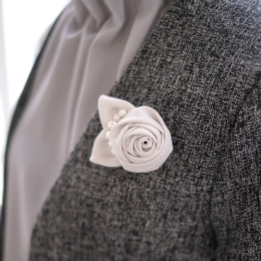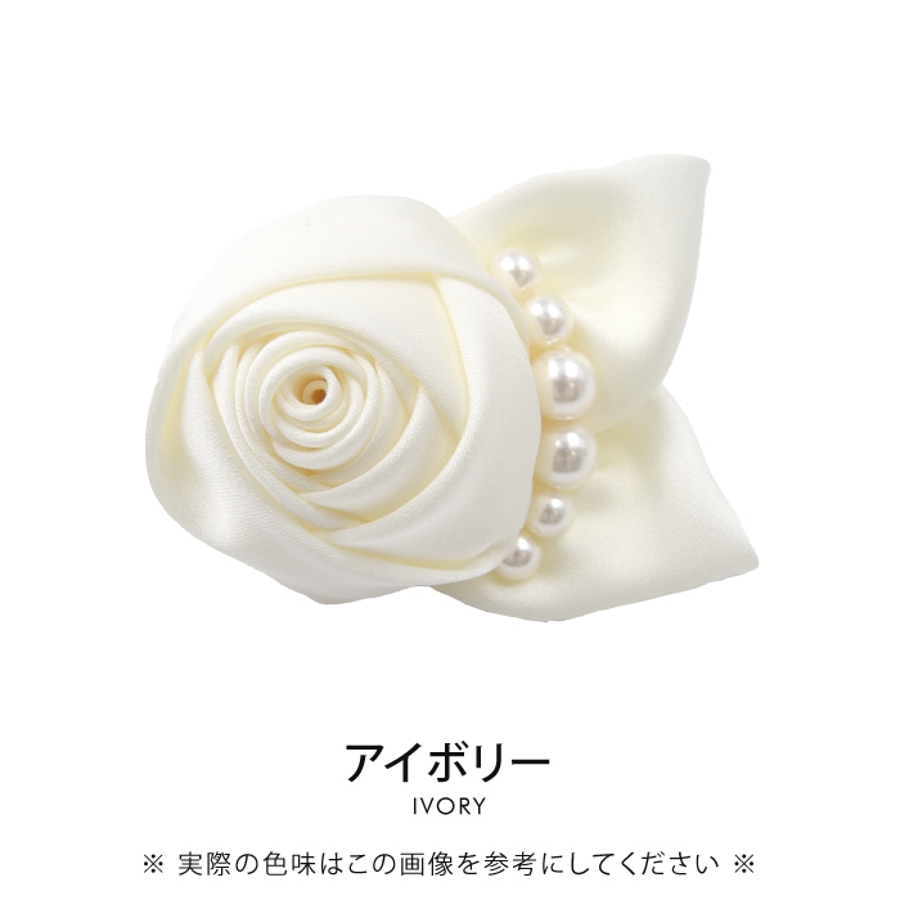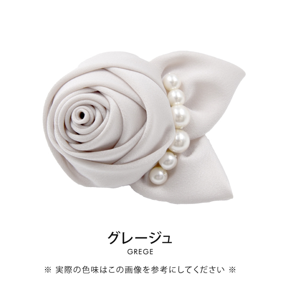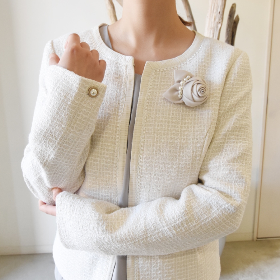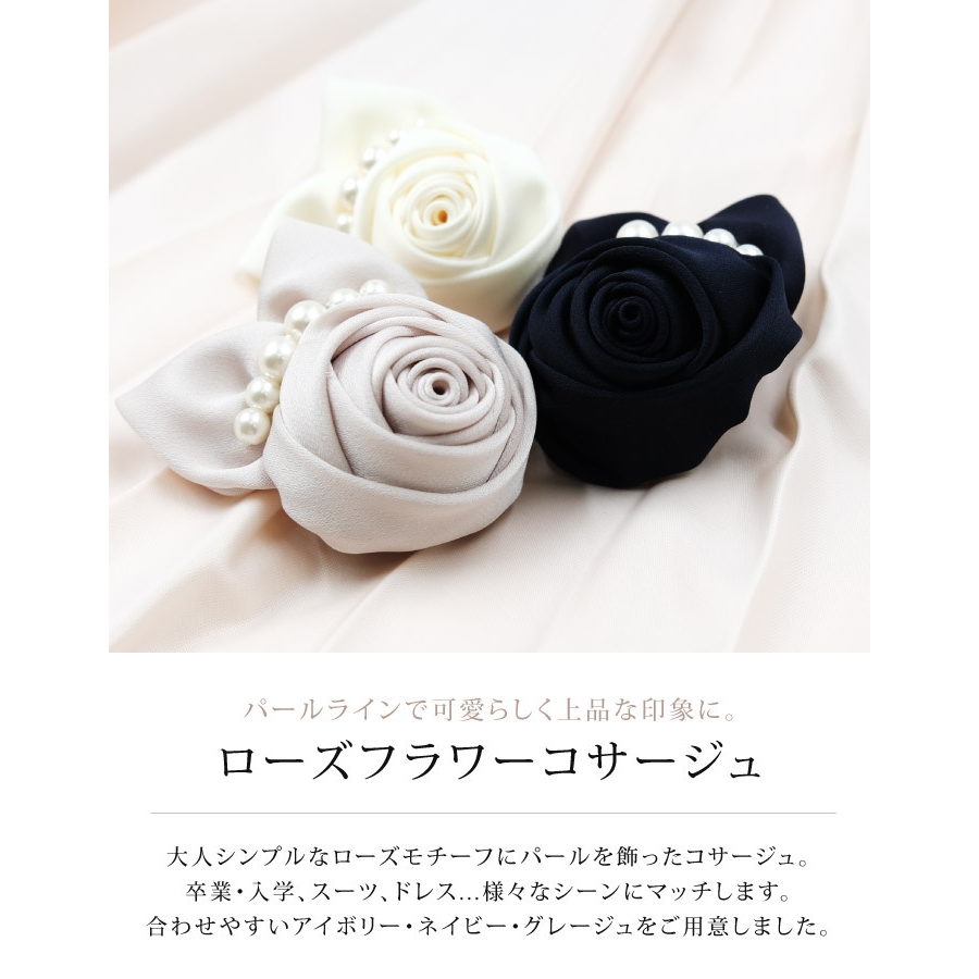 パールラインで可愛らしく上品な印象に!ローズフラワーコサージュ