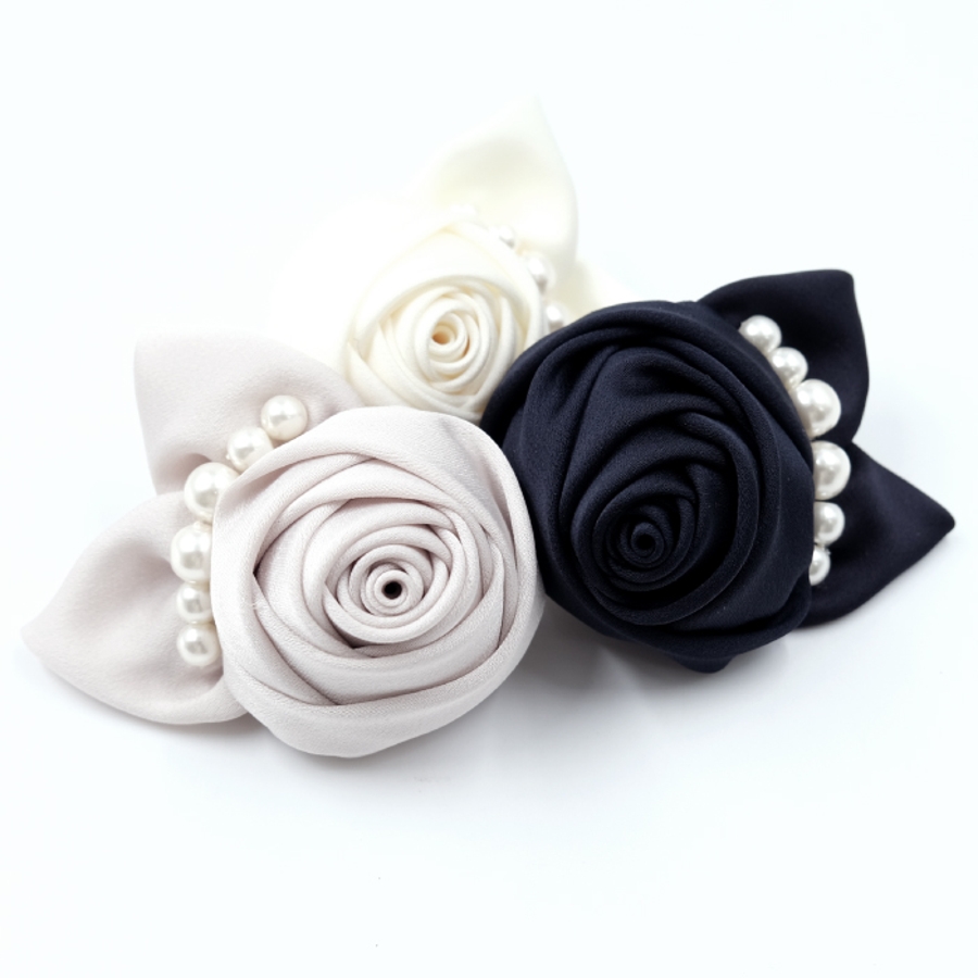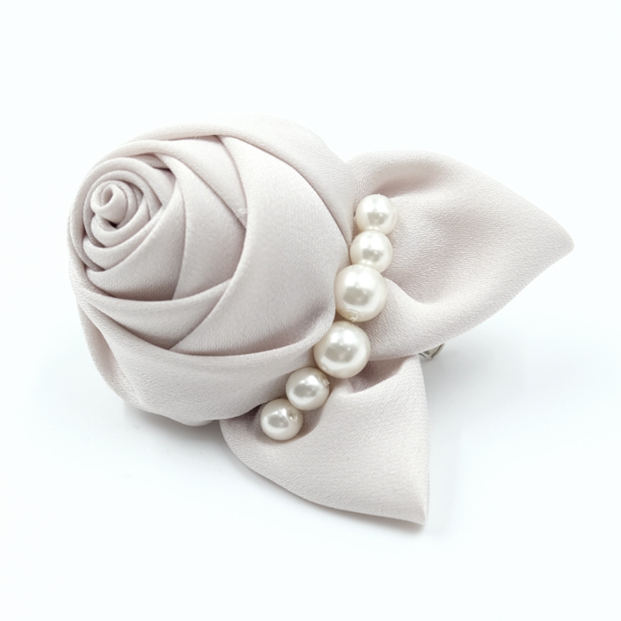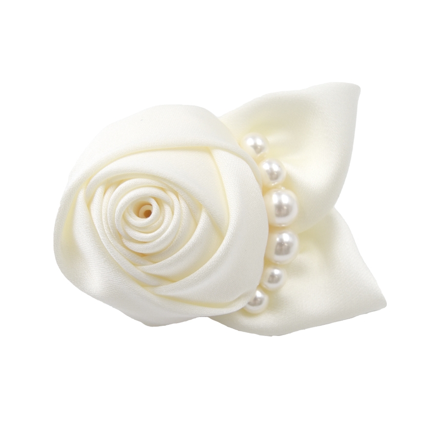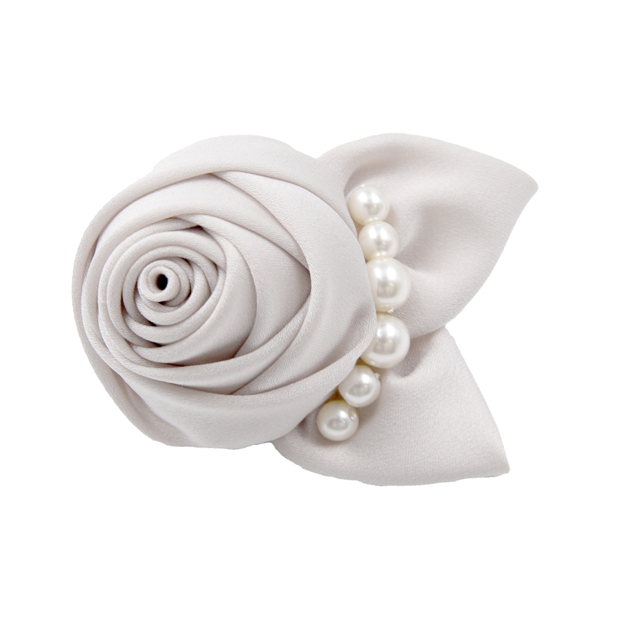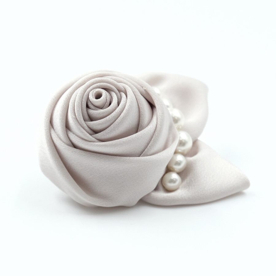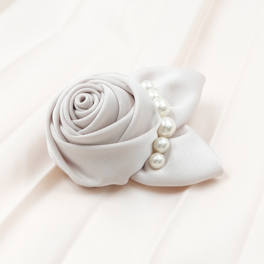 パールラインで可愛らしく上品な印象に!ローズフラワーコサージュ