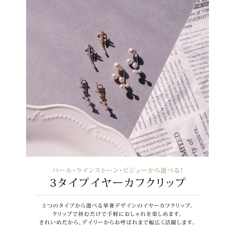 イパール・ラインストーン・ビジューの3タイプから選べる! イヤーカフクリップ