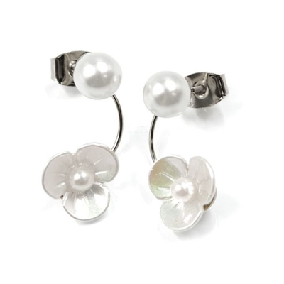 シェル調のフラワーモチーフが可愛らしいパール付きピアス。 すっきりとした華奢なフォルムと程よいサイジングが女性らしい。1点投入するだけで顔周りを華やかにしてくれるアイテムです。