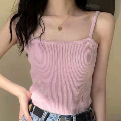 リブ編みの生地で伸縮性とフィット感の良い万能リブニットキャミソール。