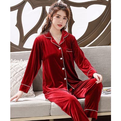 なめらかで優しい肌触り シルク調ベロア地 パジャマ上下セット