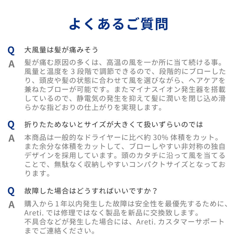 ショップ情報 | アレティは、江戸文化を育んだ東京・日本橋発のベンチャー美容ブランドです。 プロ仕様のドライヤーとヘアアイロンからスタートし、現在は電動洗顔器、電動歯ブラシ、携帯用シェーバー、基礎化粧品など、製品は多岐にわたります。 プロが求める機能とスペックを残しながら「安全を最優先にした設計・直感的でわかりやすい操作性」をデザイン。 生産は、アメリカやヨーロッパの高級ブランドからも信頼を寄せる提携工場・自社工場で行っています。 品質管理から販売まで自社で一貫して行い、大手総合家電メーカーにはないスピード感でこれまでにない“機能・使い勝手・デザイン”を持たせたAreti独自の製品を生み出しています。 |