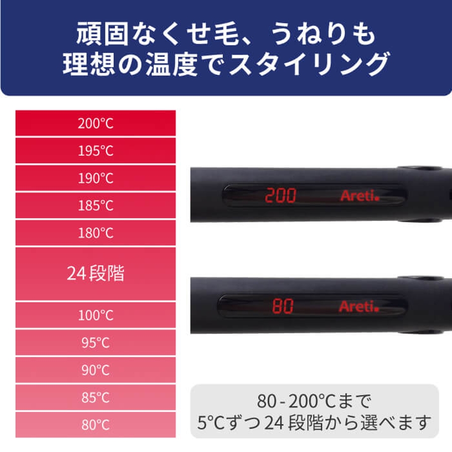 80度から200度まで、24段階の温度設定により、自分の髪質に合った設定が可能