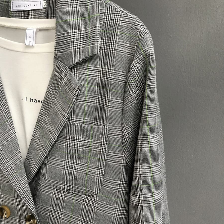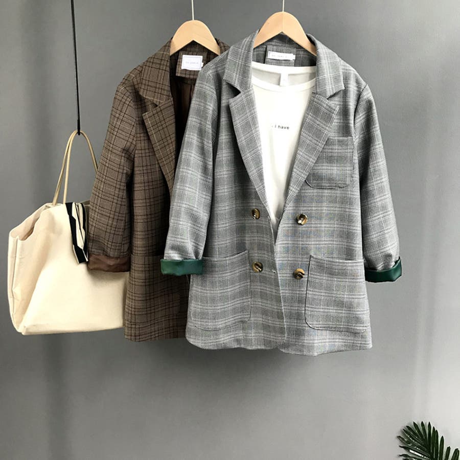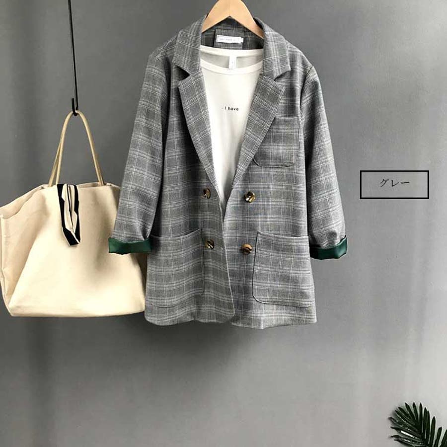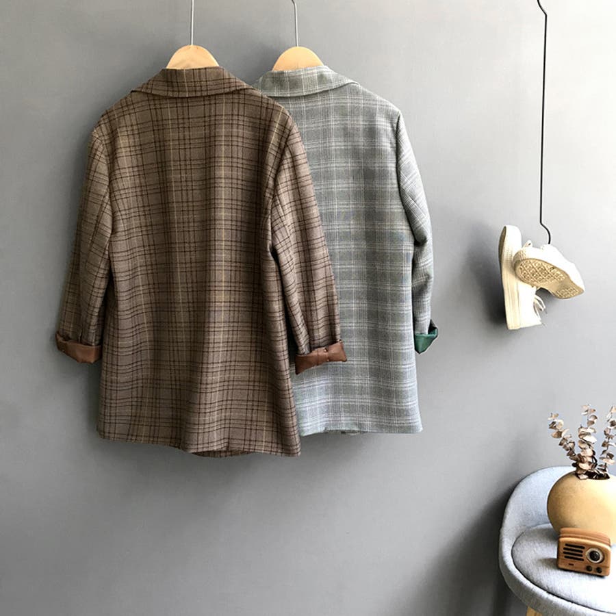 ・シンプルなコーデに羽織るだけで雰囲気UPのグレンチェック柄ジャケット。