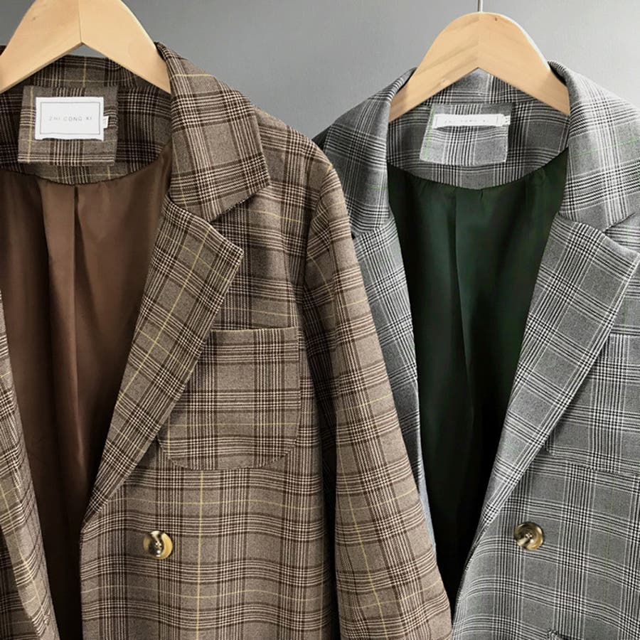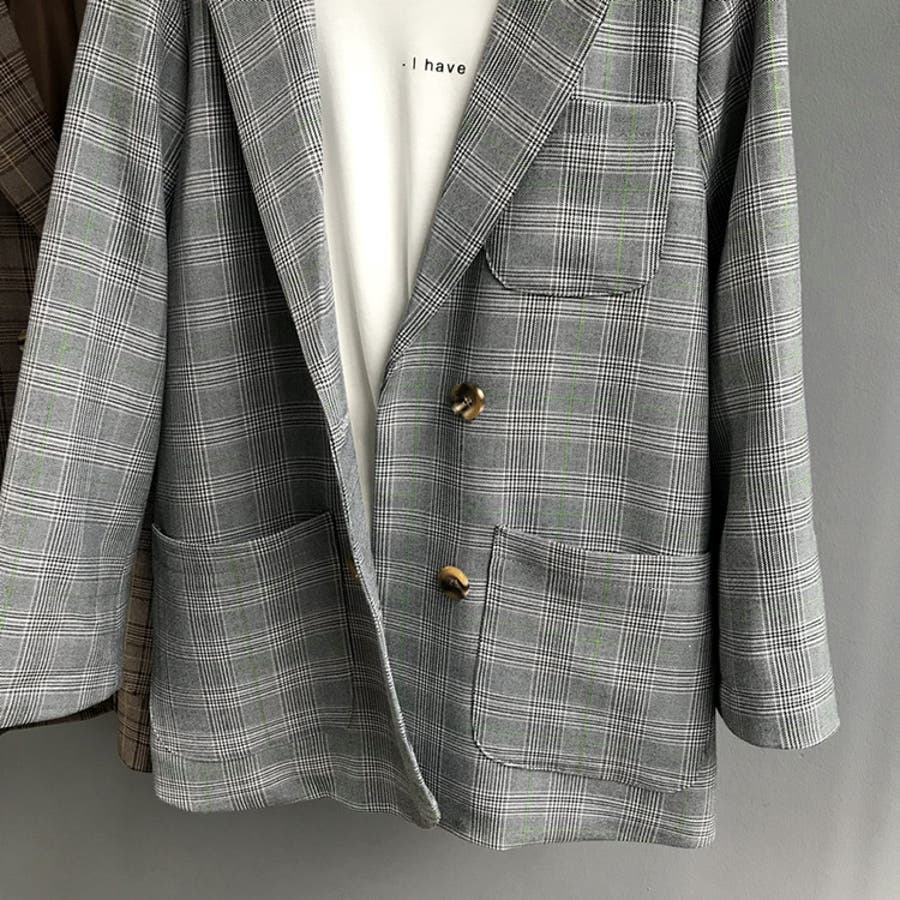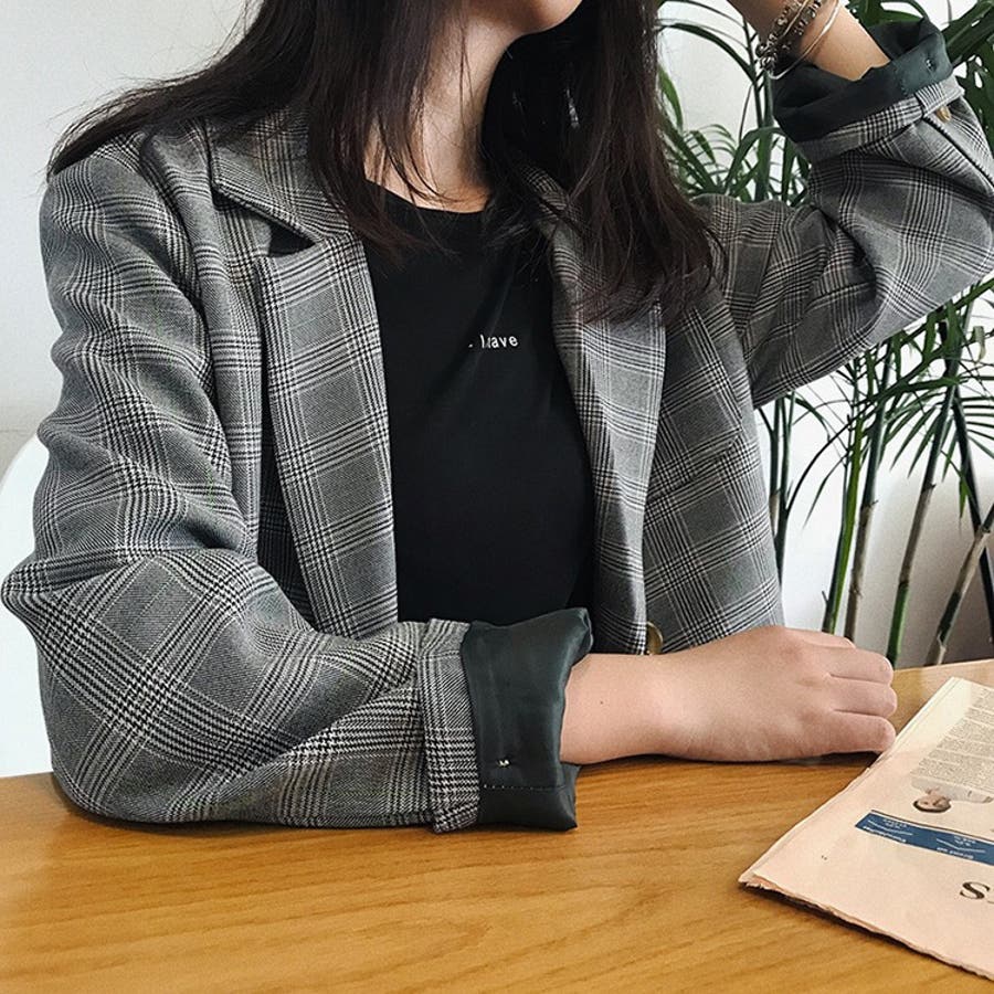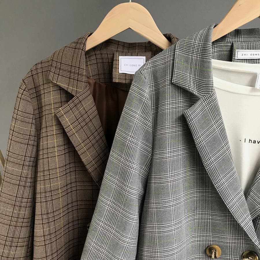 ・シンプルなコーデに羽織るだけで雰囲気UPのグレンチェック柄ジャケット。