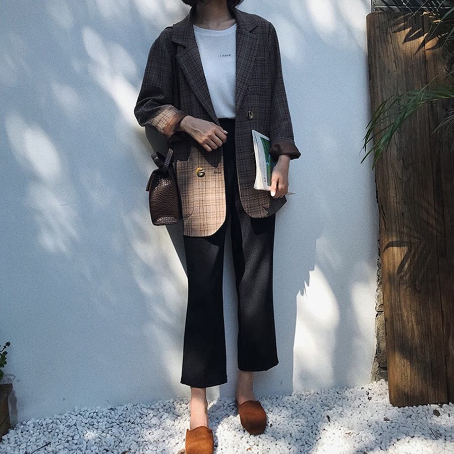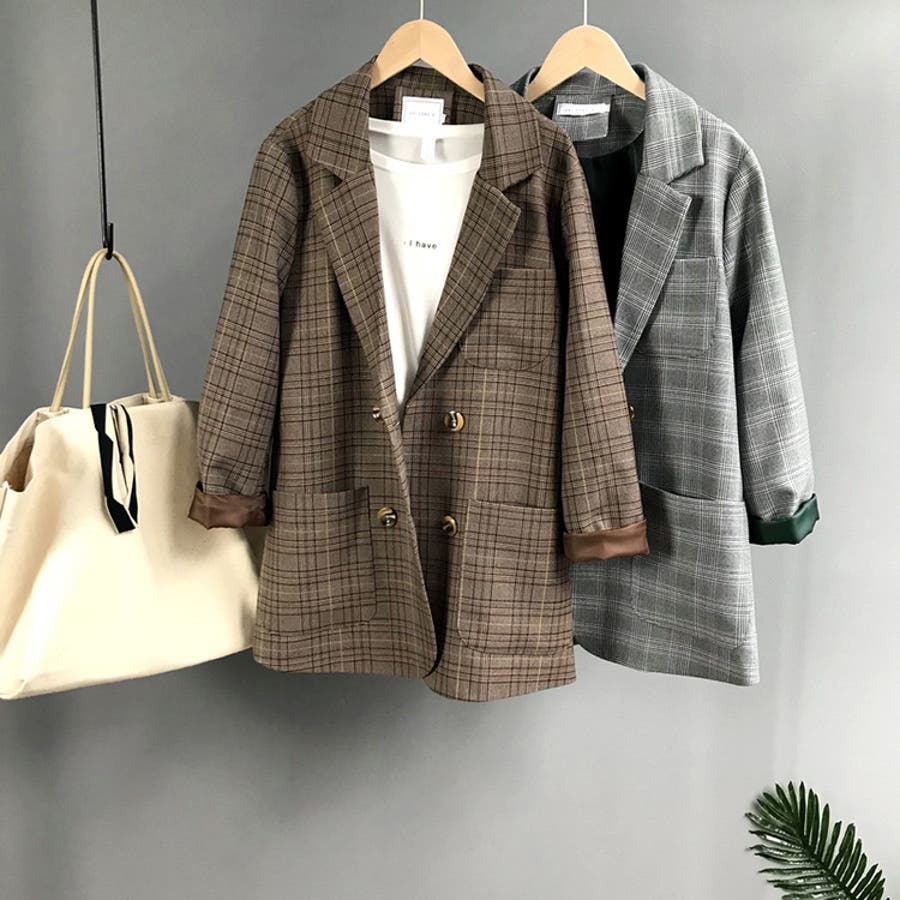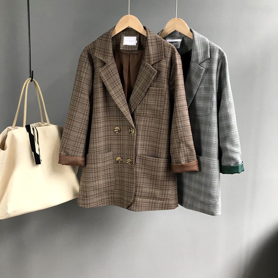 ・同色のチェックパンツと合わせて、メンズライクでシャープ感が演出できる!!