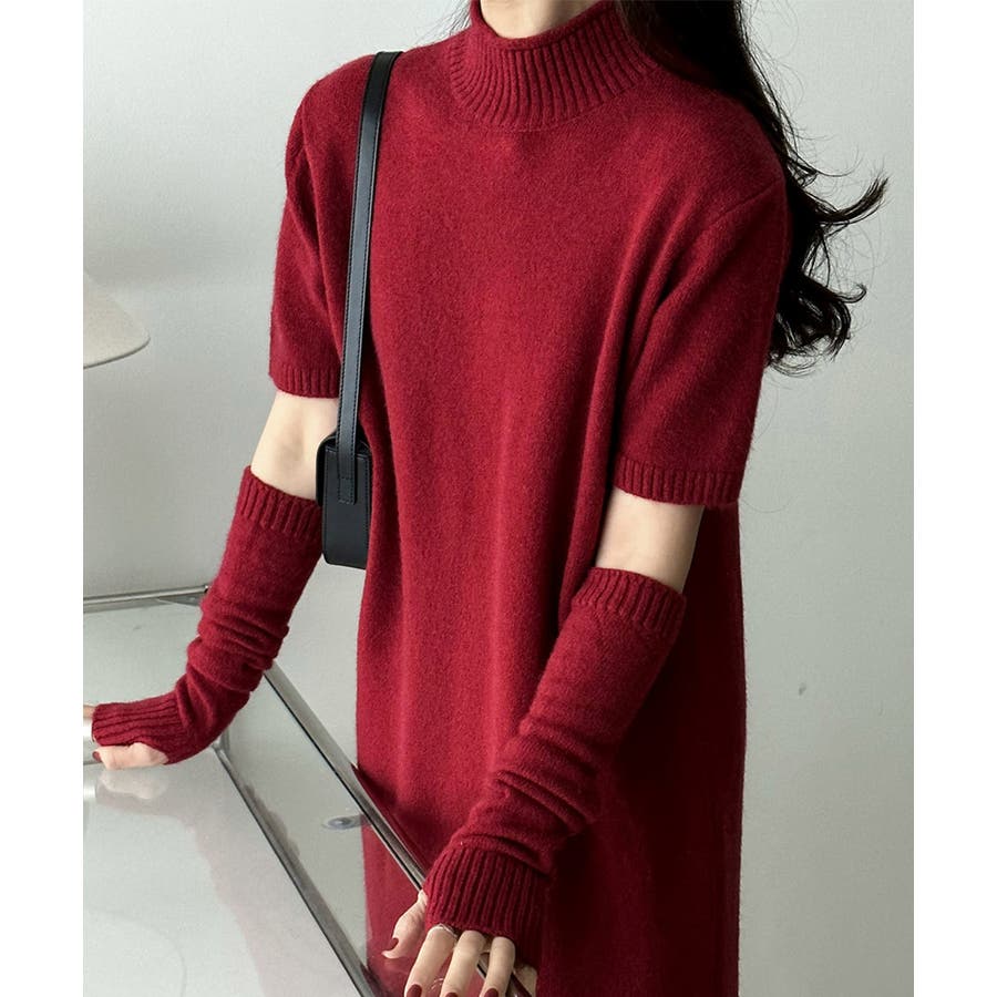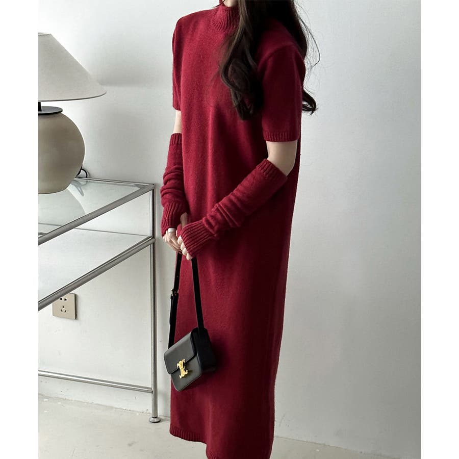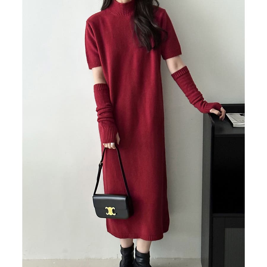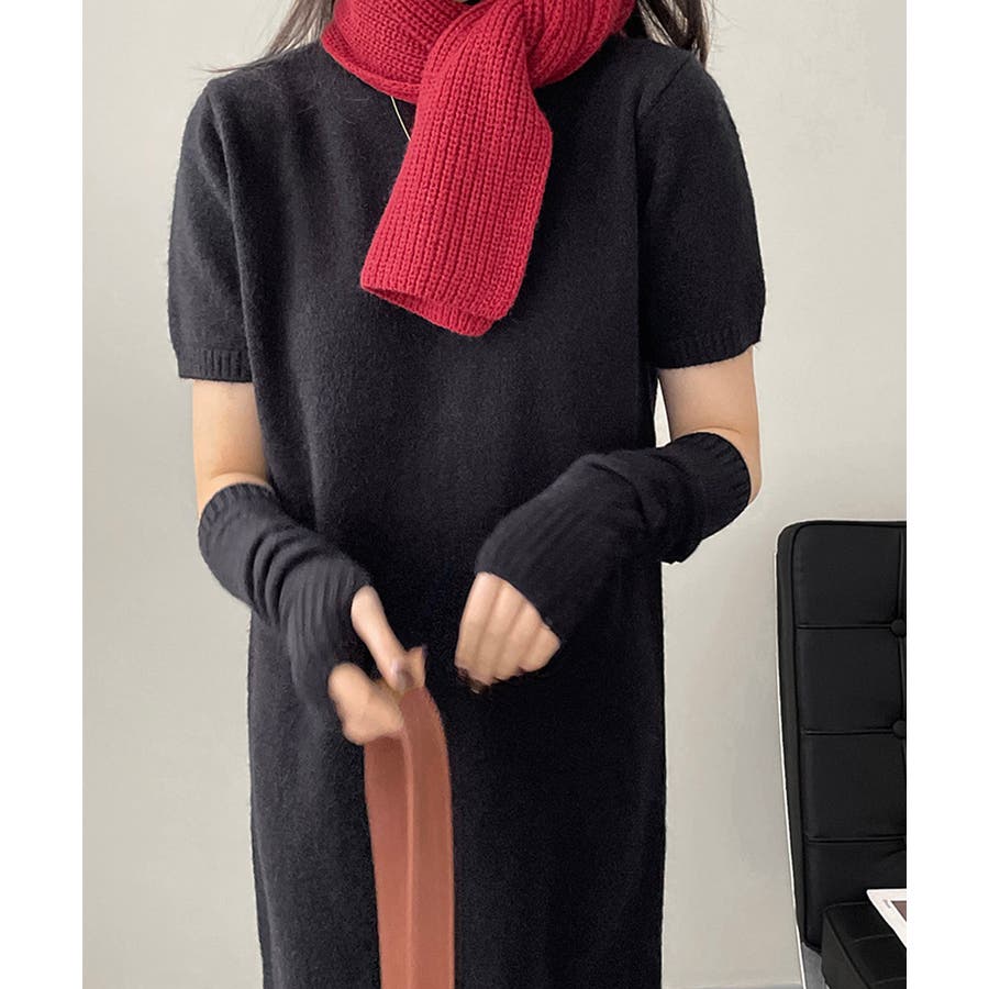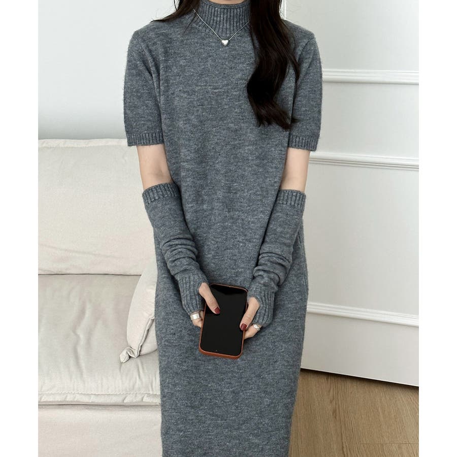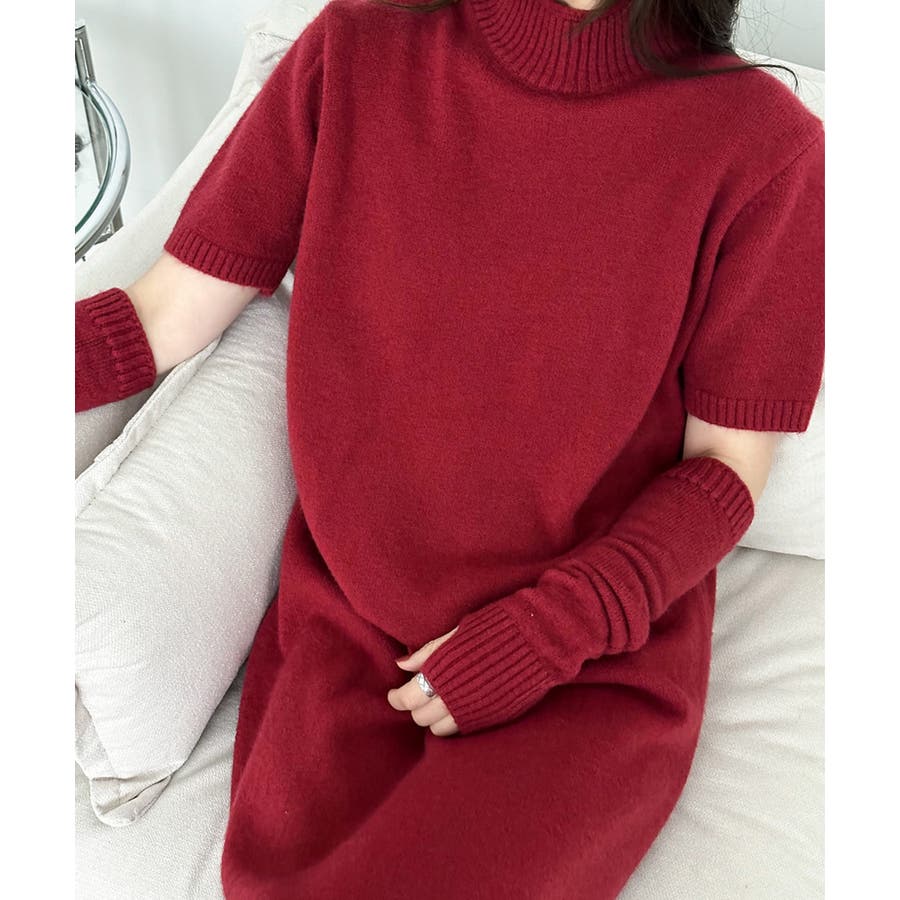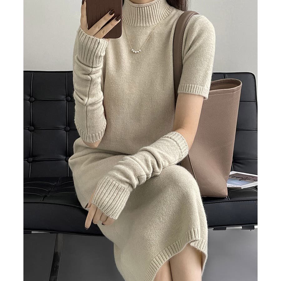 ハーフスリーブにトレンドの同色のニットグローブセットで、アウターを外してもファッション性が高く、ロングブーツやハイカットスニーカーと合わせて着用頂くのがおすすめ。