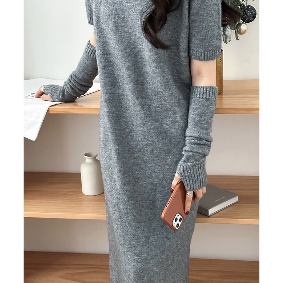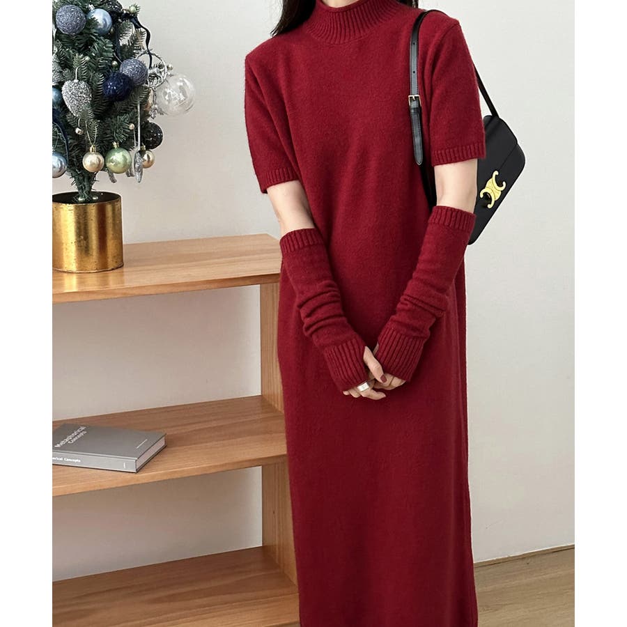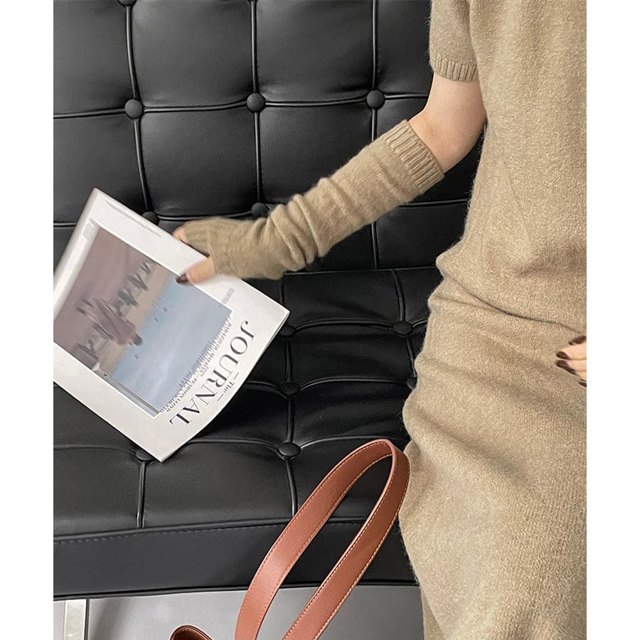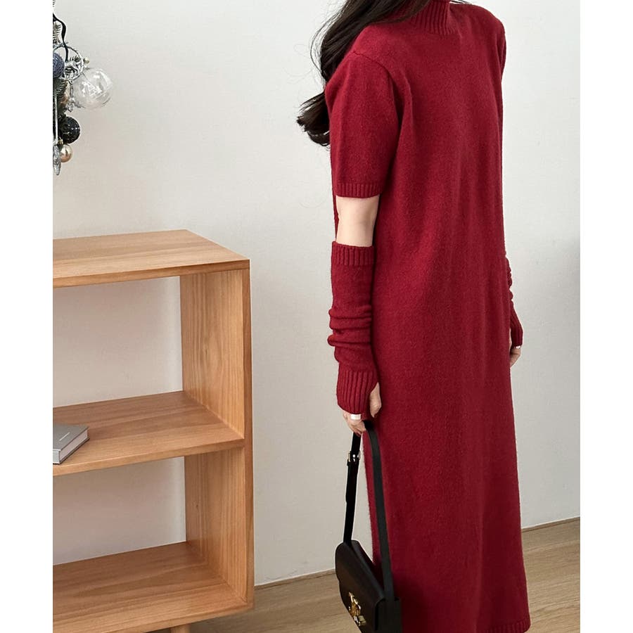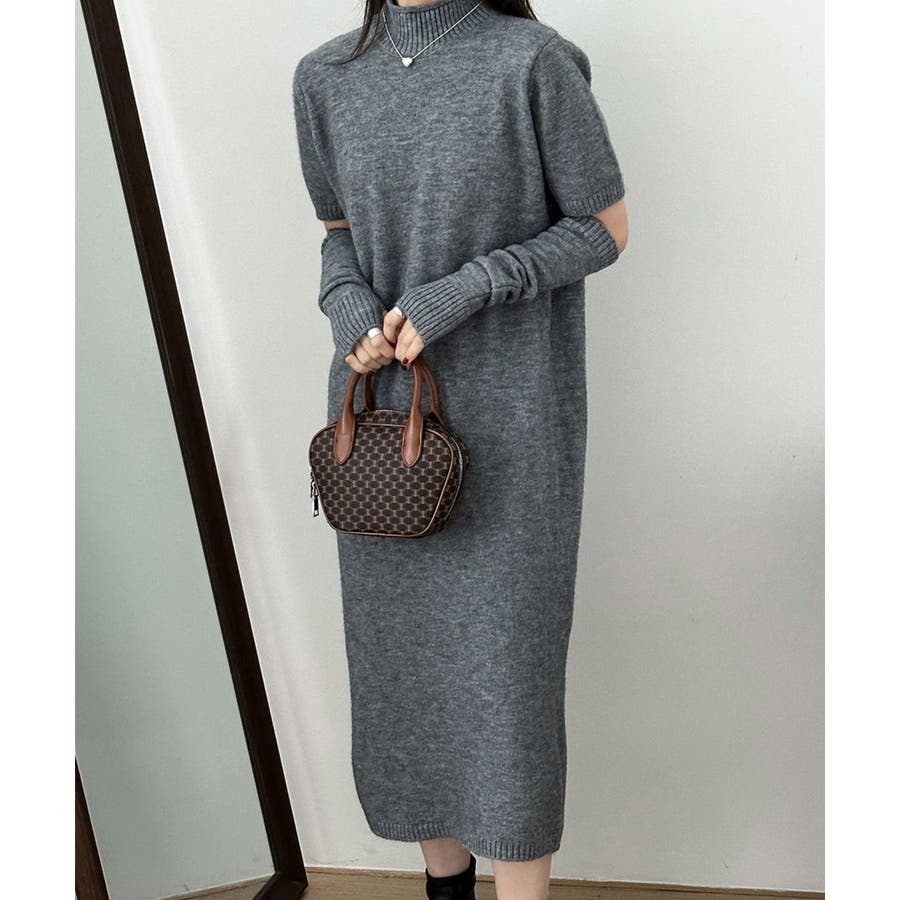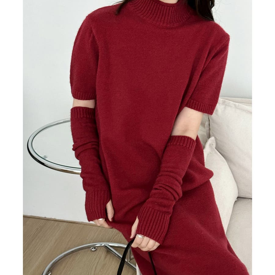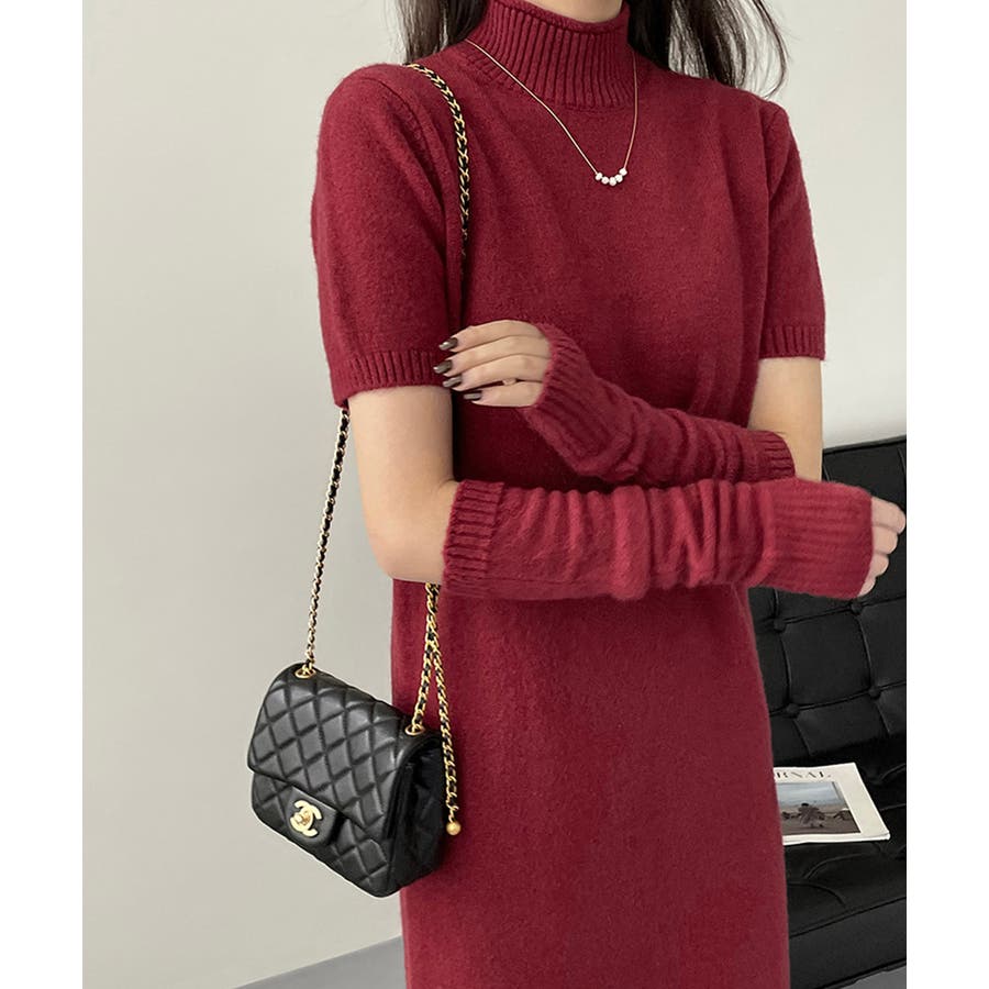 ハーフスリーブにトレンドの同色のニットグローブセットで、アウターを外してもファッション性が高く、ロングブーツやハイカットスニーカーと合わせて着用頂くのがおすすめ。