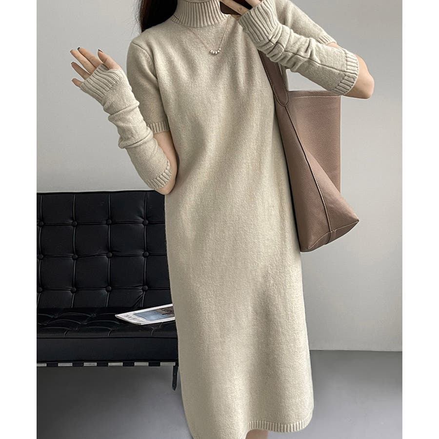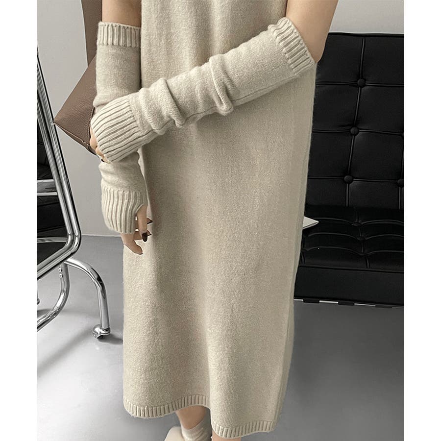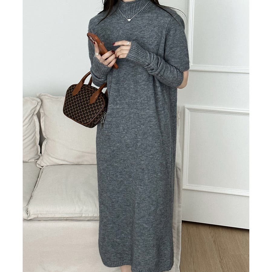 ロング丈にジャケットを羽織っていただくだけで、こなれスタイルが叶うニットワンピースです。