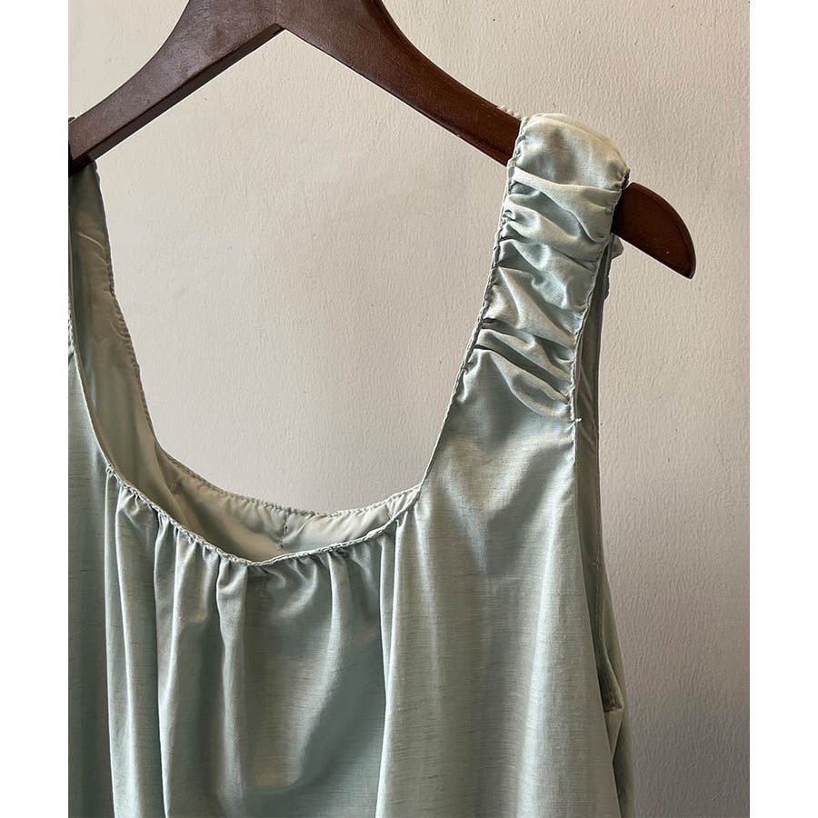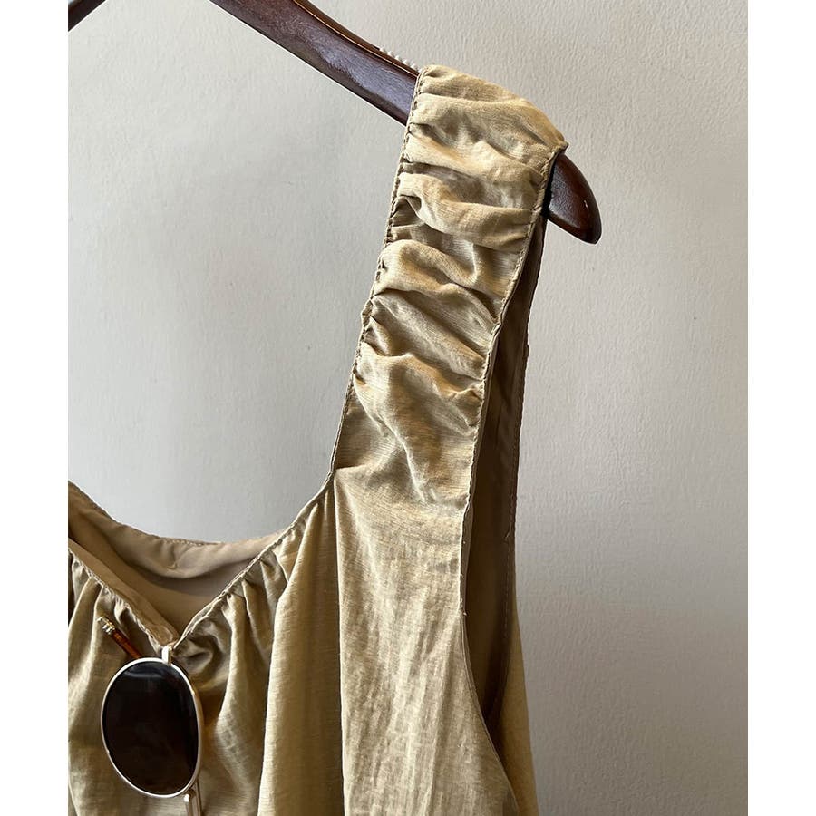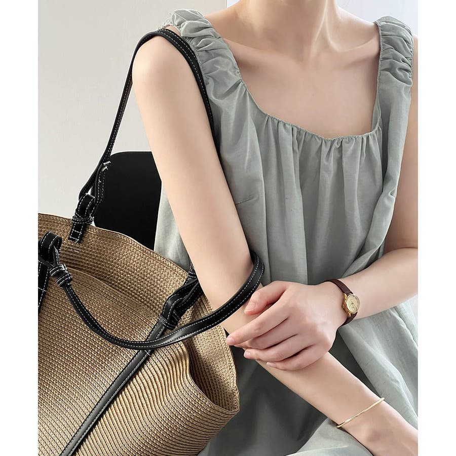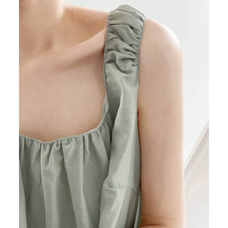 肩幅がしっかりとり、シワ加工ギャザーデザインになっており、肩に負担をかけずにオシャレ度↑
