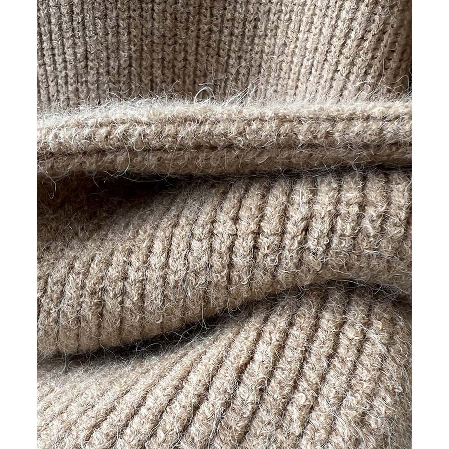 体のラインをきれいに見せてくれるリブニット素材は、女性らしいシルエットを演出してくれます。
