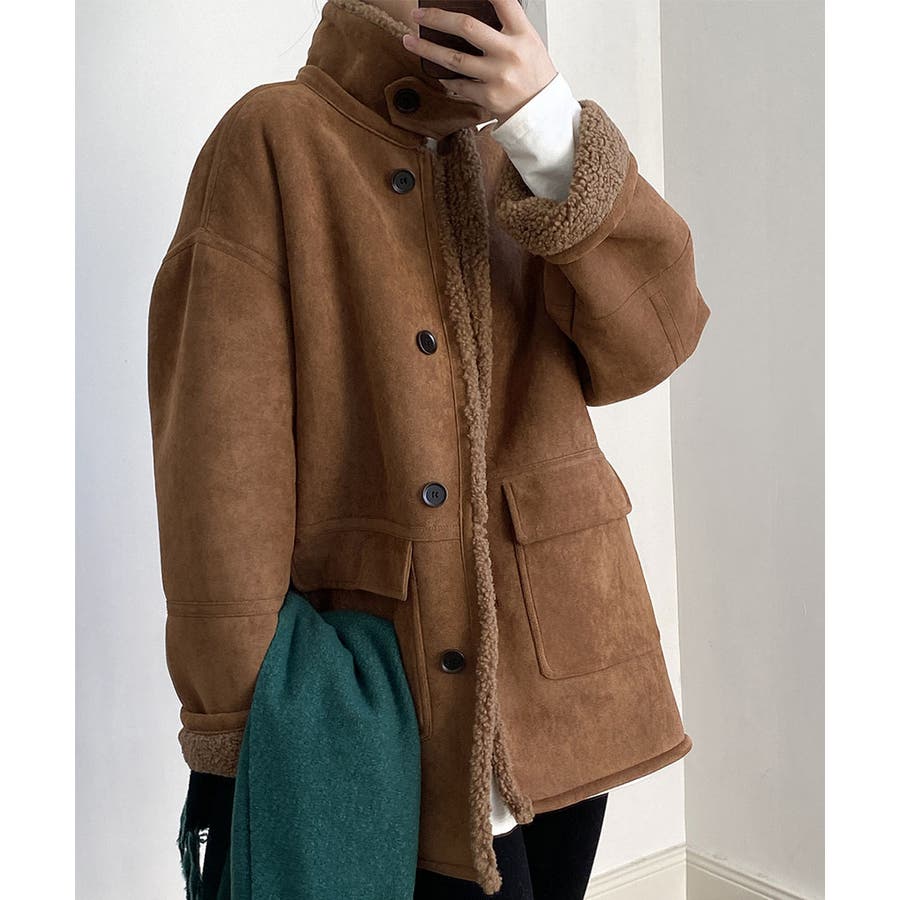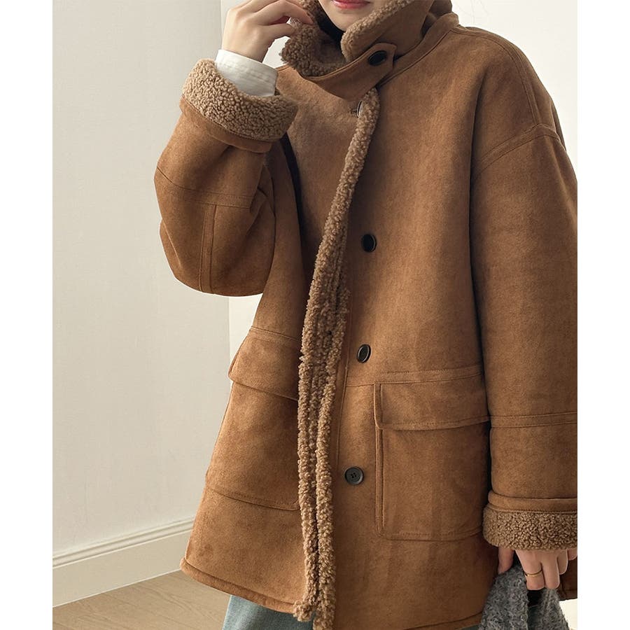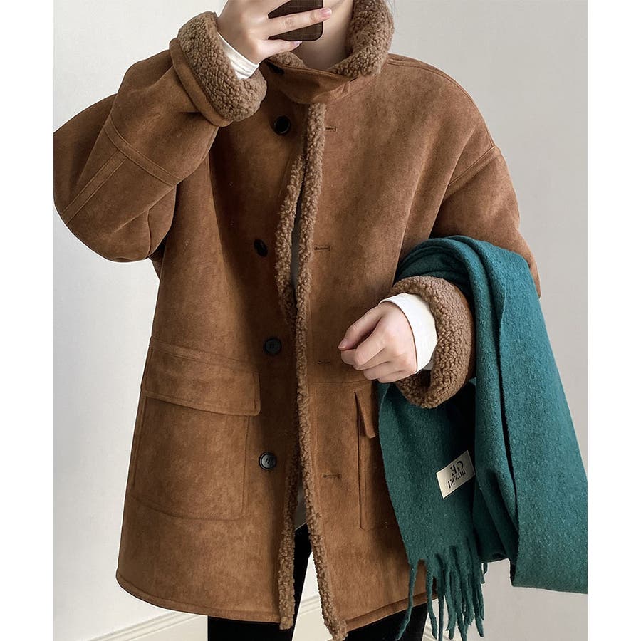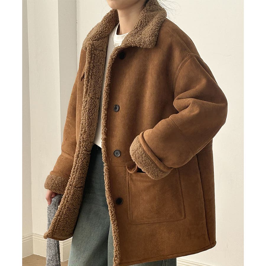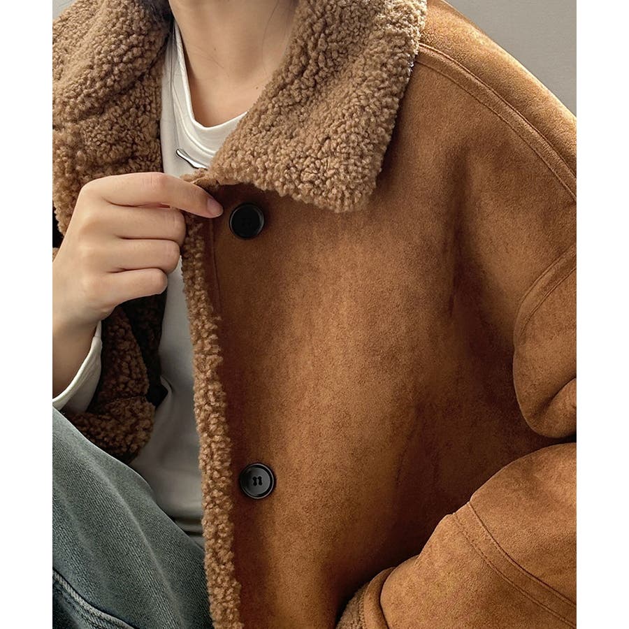 Mouton Boa Half Coat が登場しました!このコートは、心地良いムートンボア素材が特徴のハーフコートで、肌触りが良く、暖かさをしっかりと提供します。キャメルの色合いは、シーズンにぴったりのナチュラルで落ち着いた印象を与え、冬のコーディネートに華やかさをプラスします。