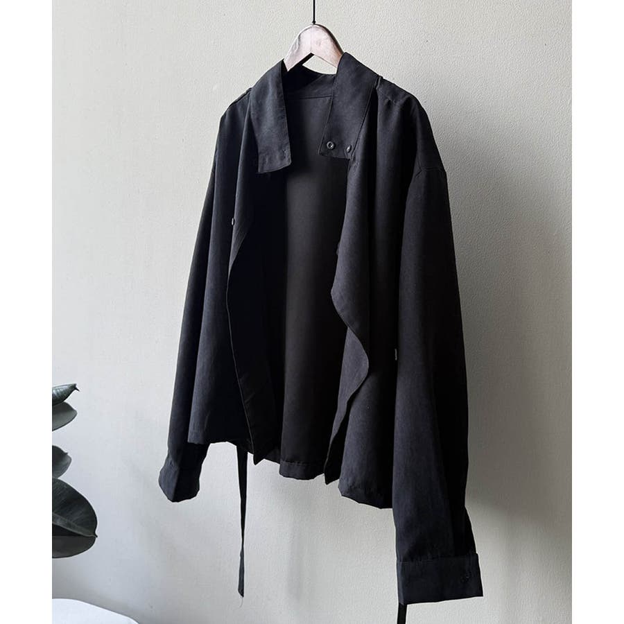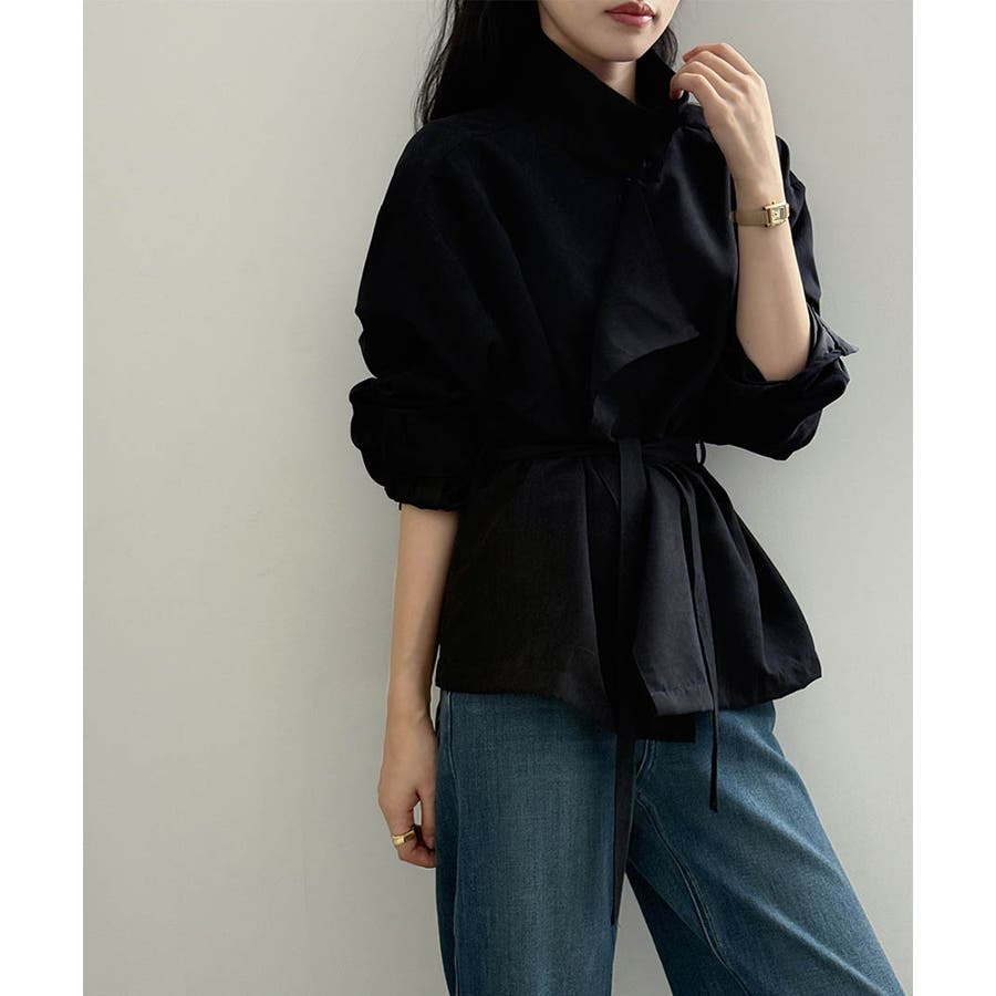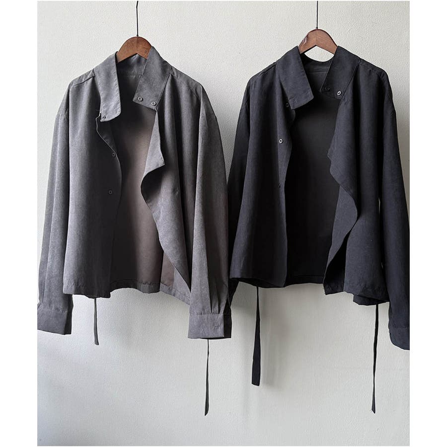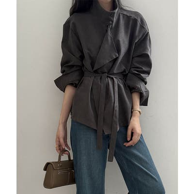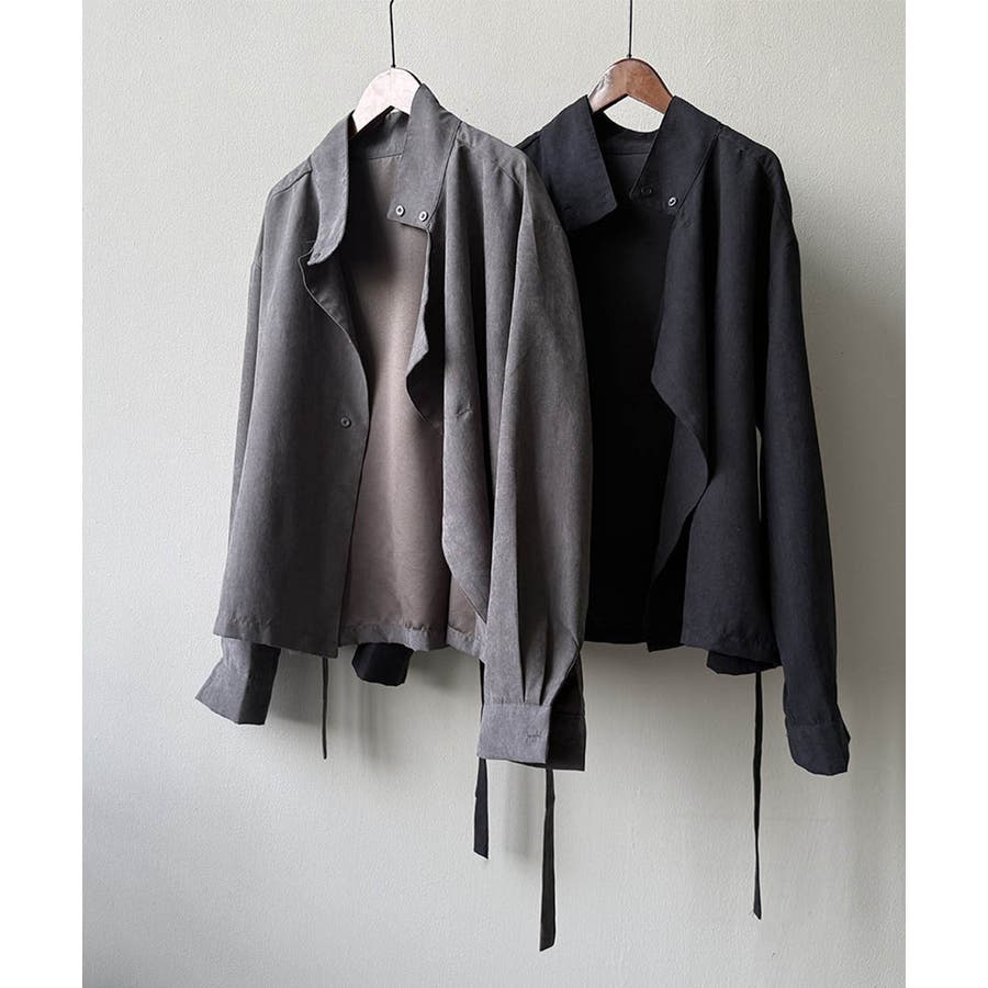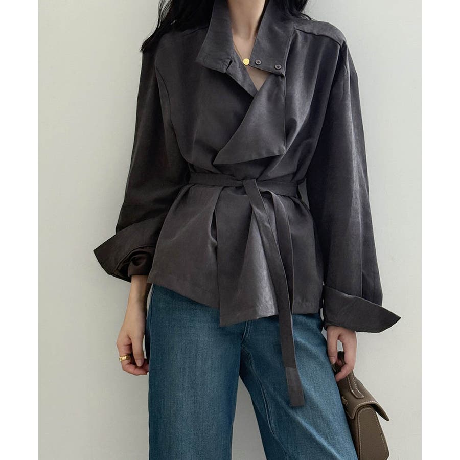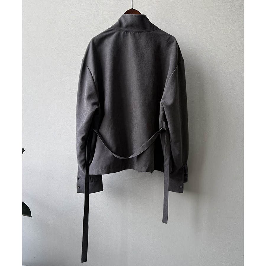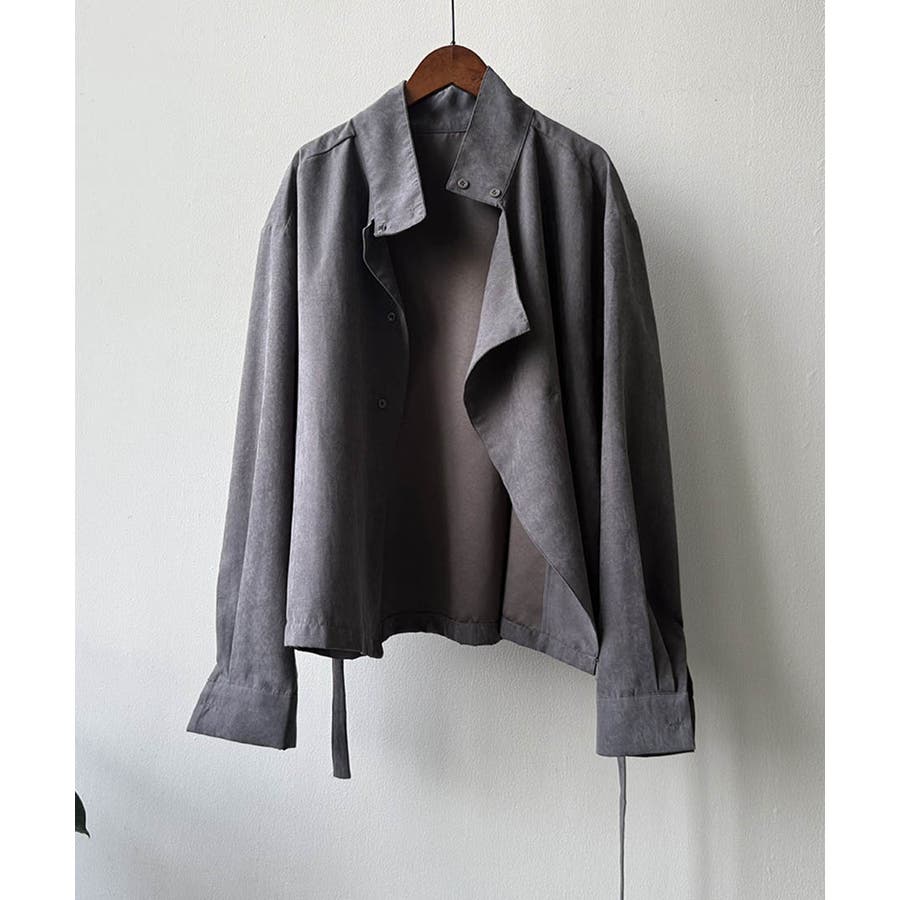 ●品 名:Velvety Stand Collar Waist-Tied Shirt Jacket