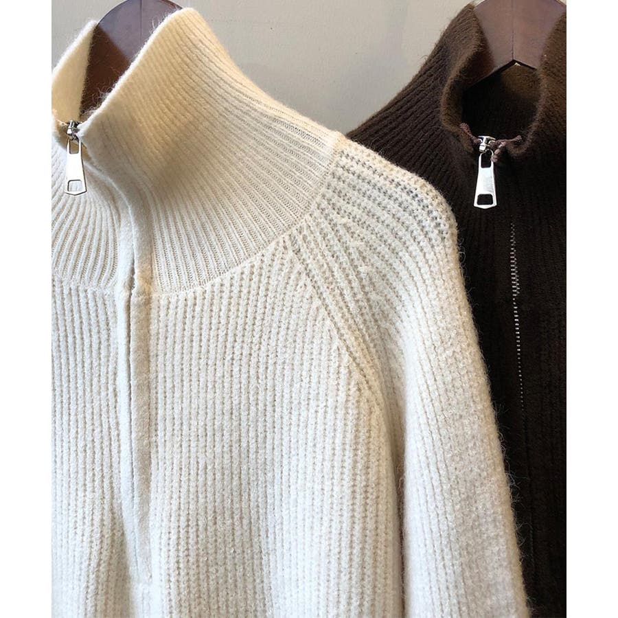 ジップの開き具合で襟元の印象が変えられて、程よい厚みのある細身の縦リブ、ラフに着るだけでお洒落印象に導く、こなれ感を演出してくれます♪