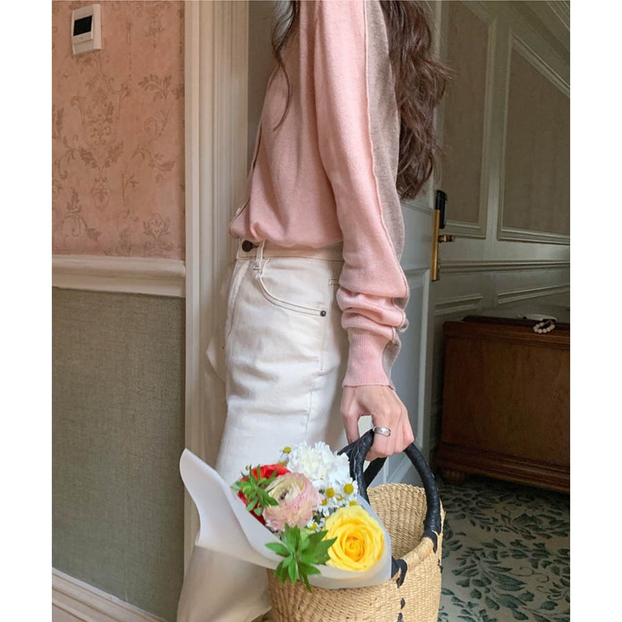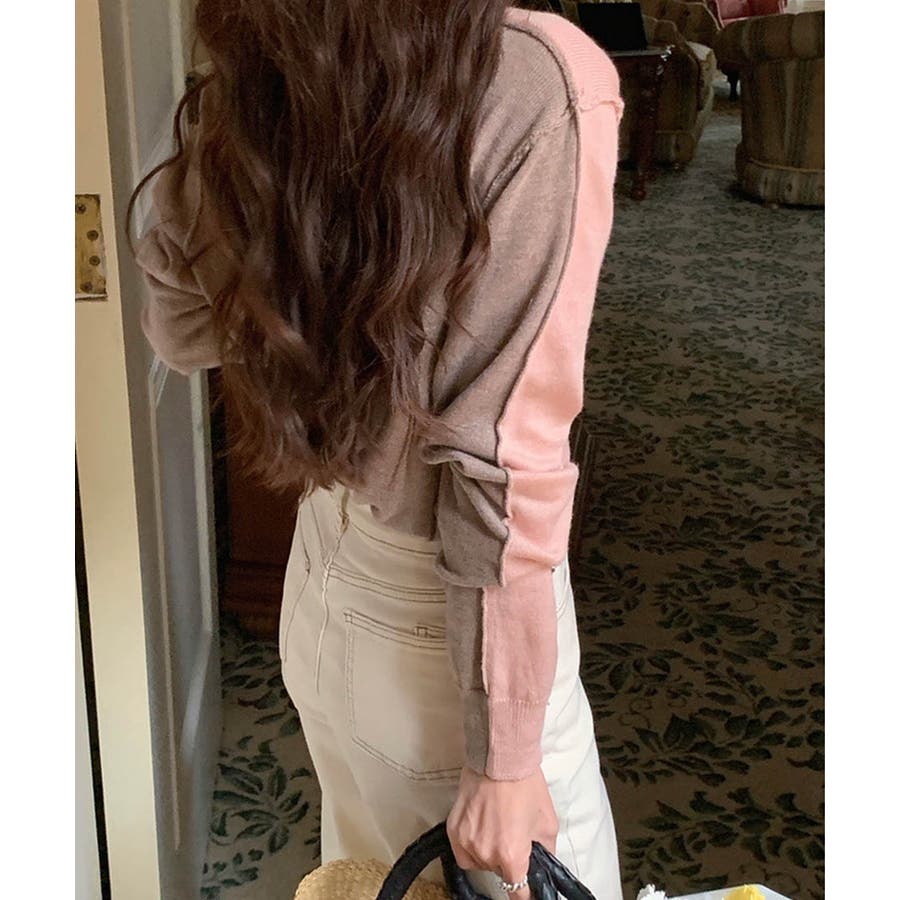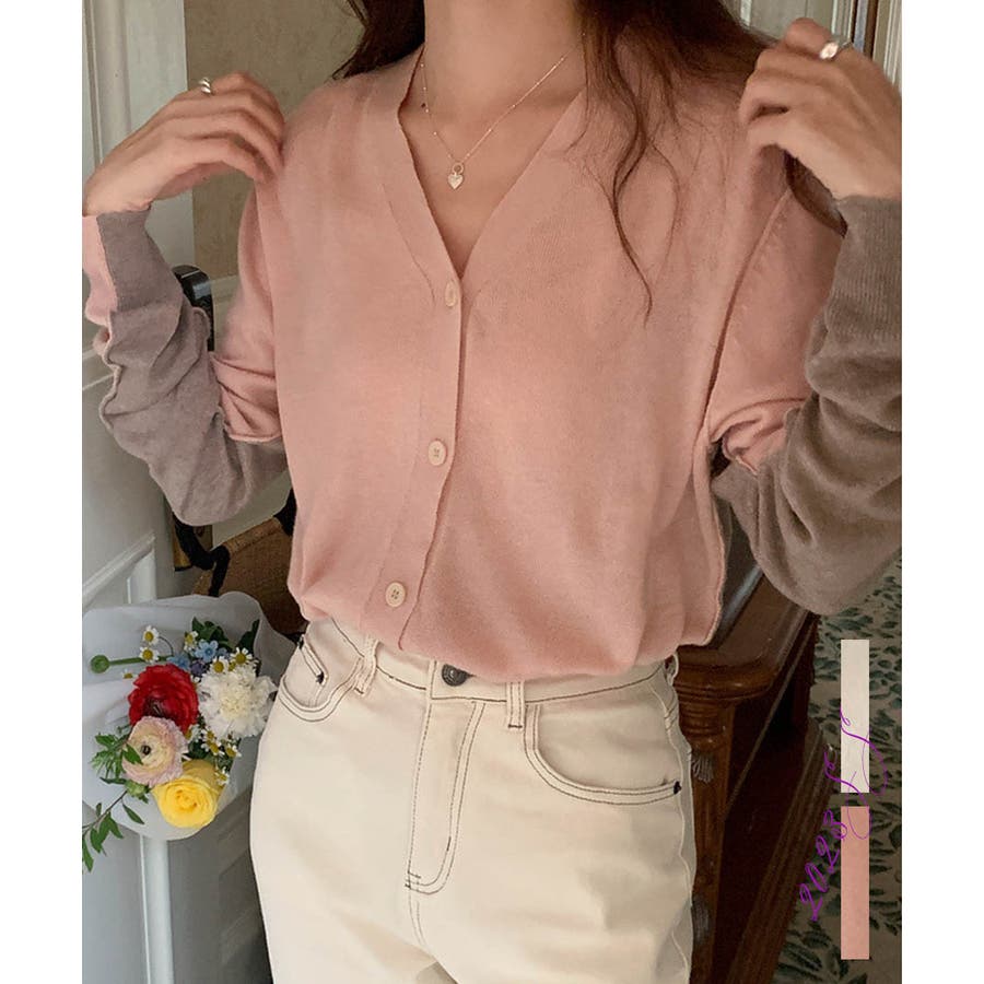 バイカラーアウトリンキングカーデイガン 25062 バイカラーカーデイガン