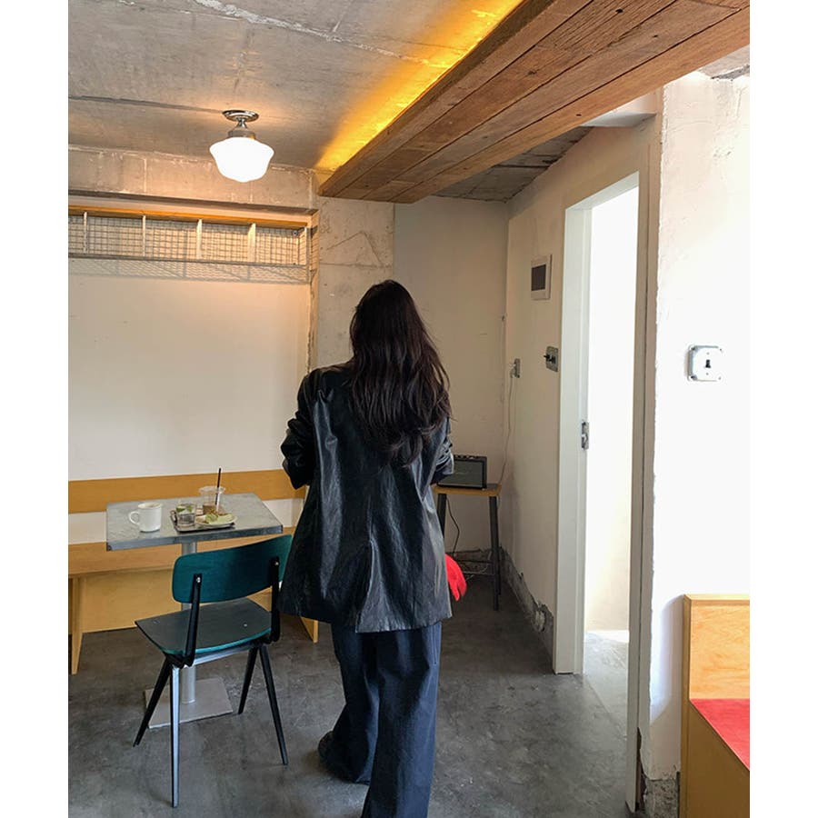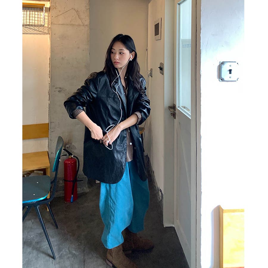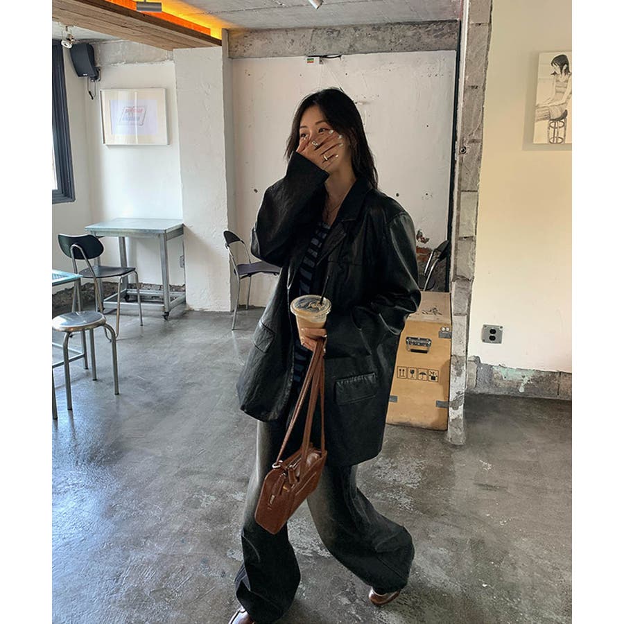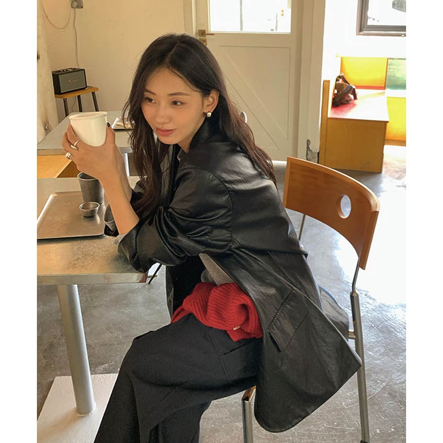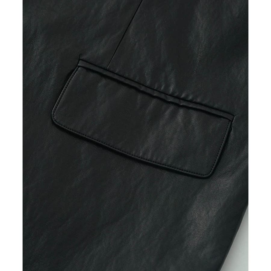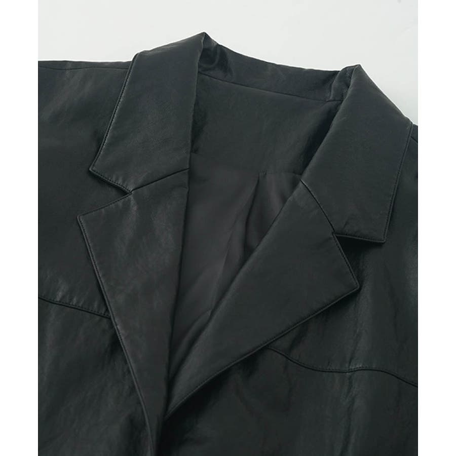 テーラードジャケットの持つトラディショナルで「きちんと感」のあるデザインと、レザー素材の持つクールでエッジの効いた雰囲気が融合しています。