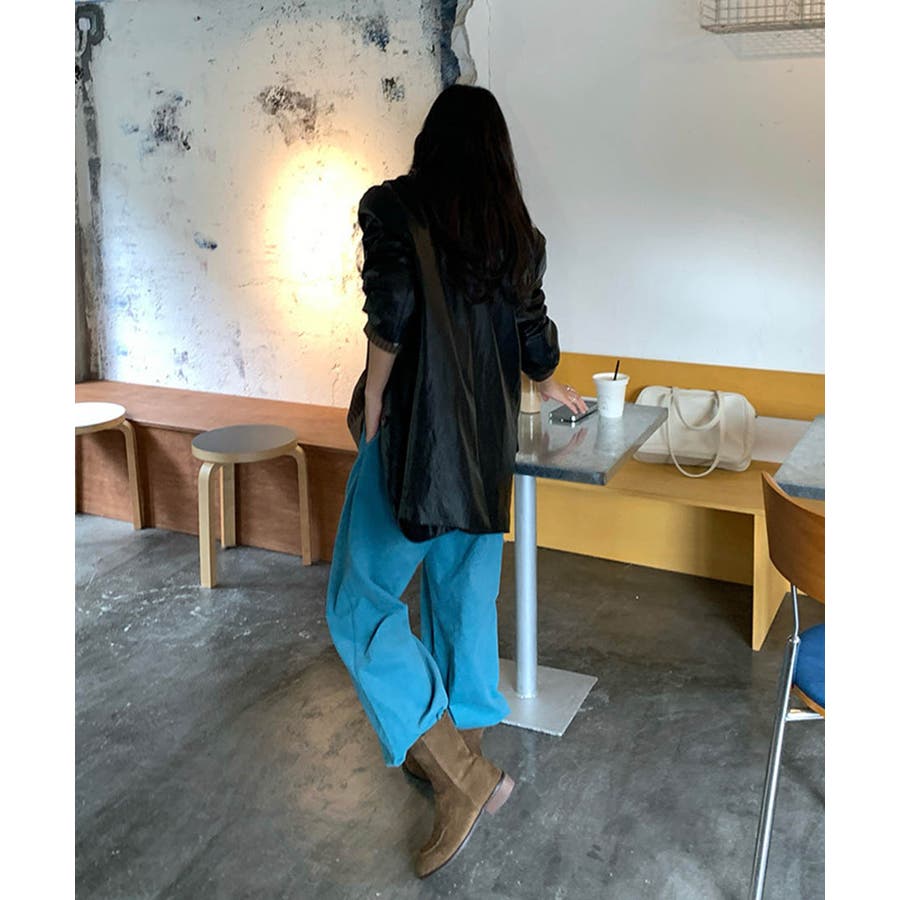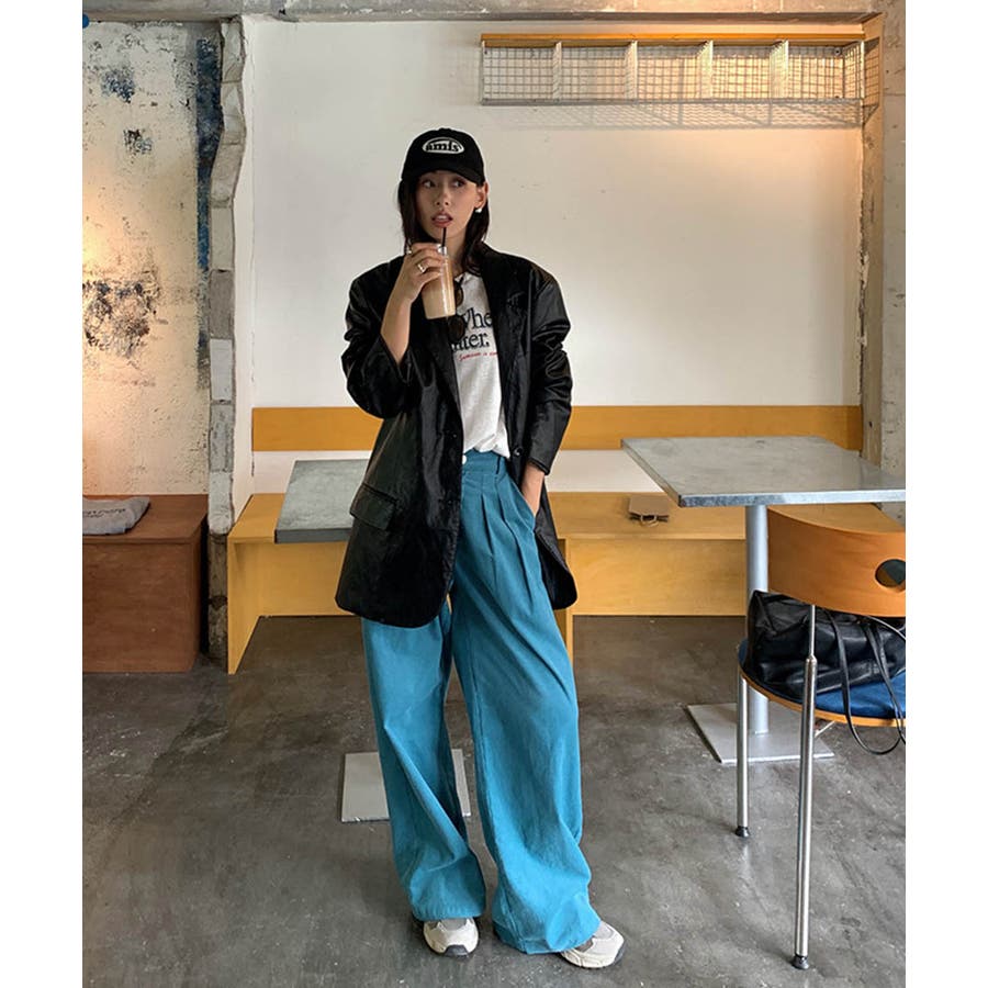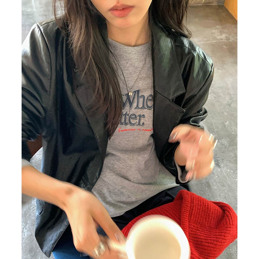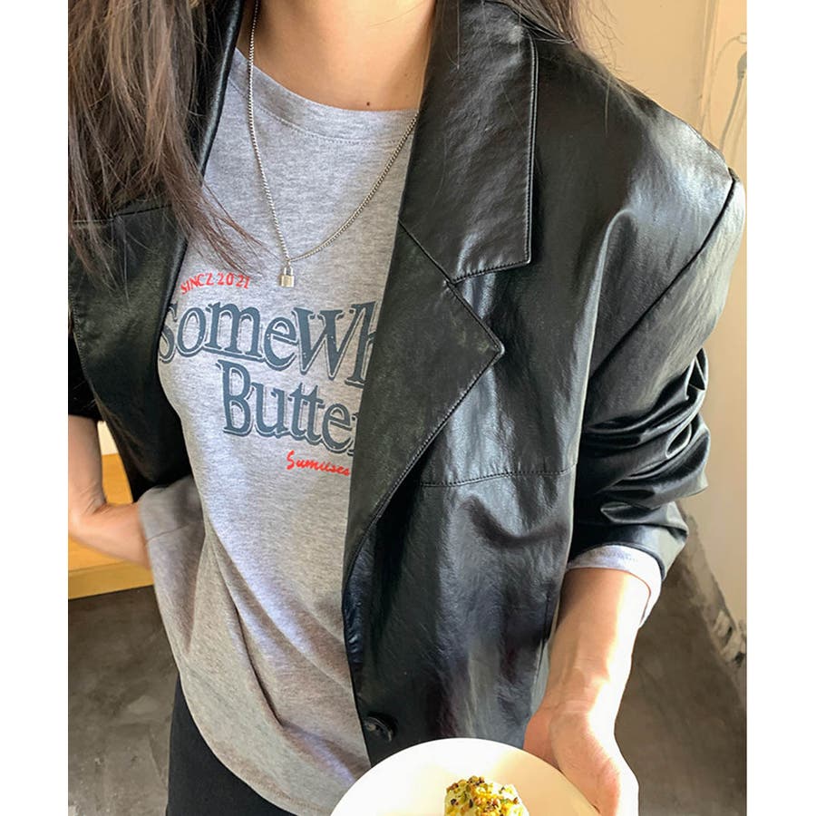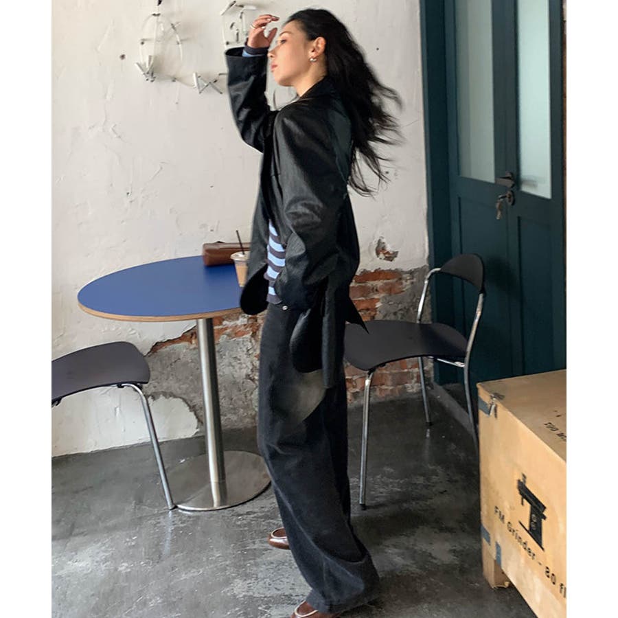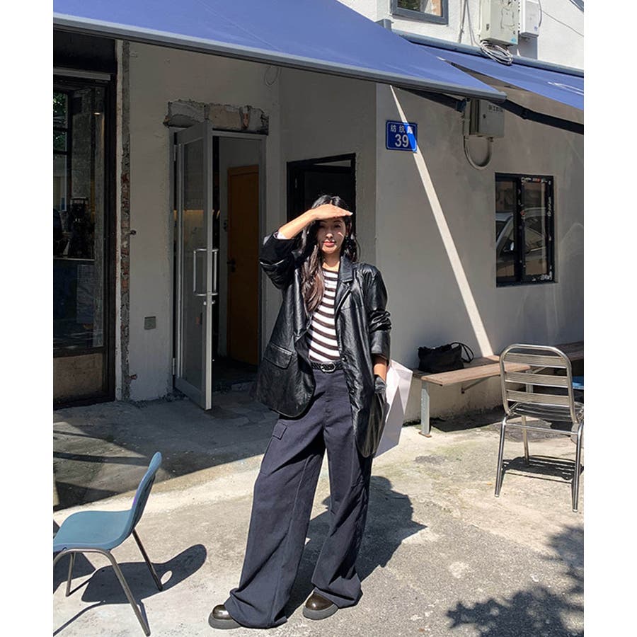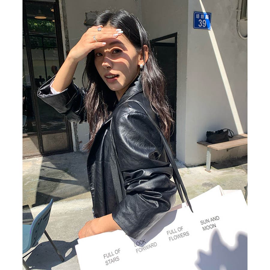 テーラードジャケットの持つトラディショナルで「きちんと感」のあるデザインと、レザー素材の持つクールでエッジの効いた雰囲気が融合しています。