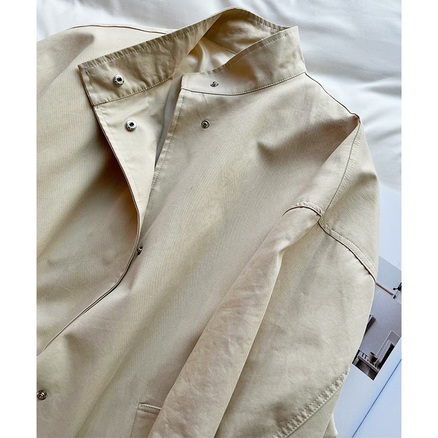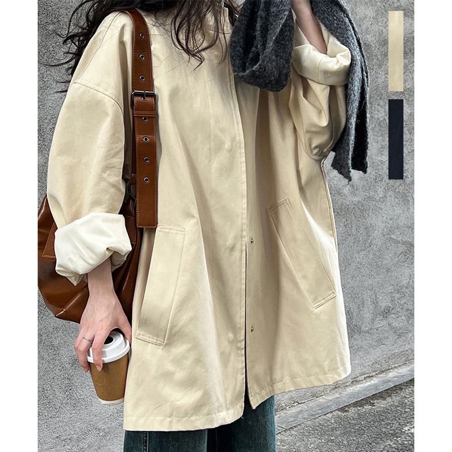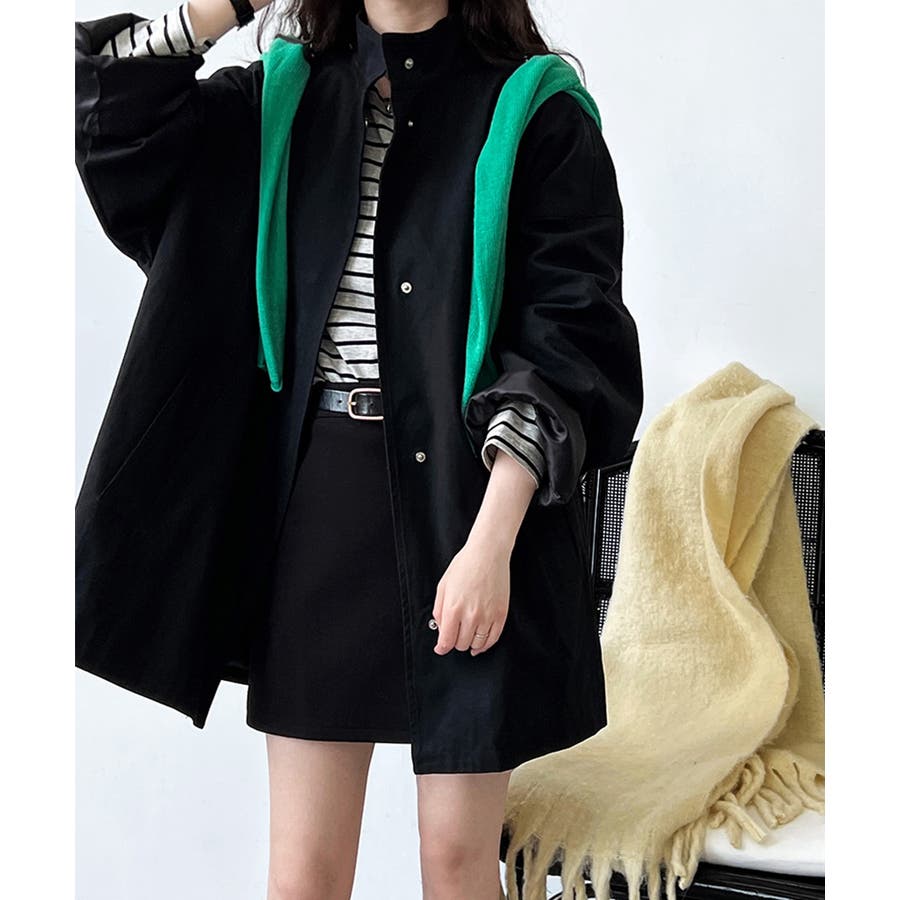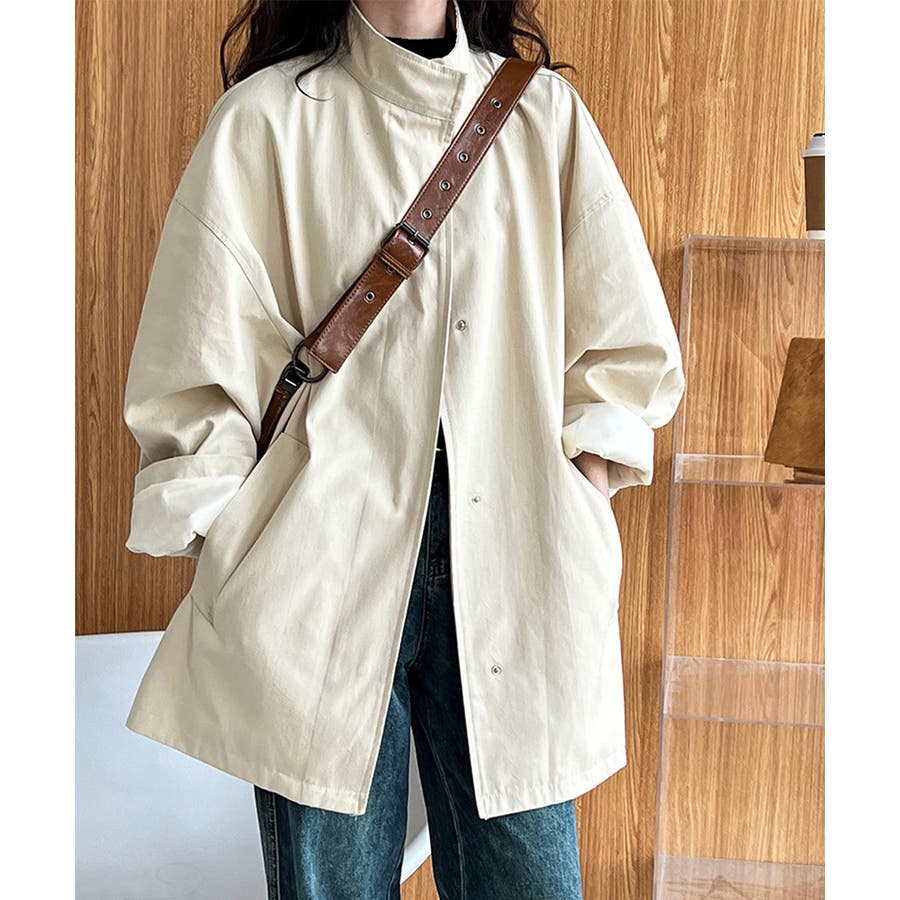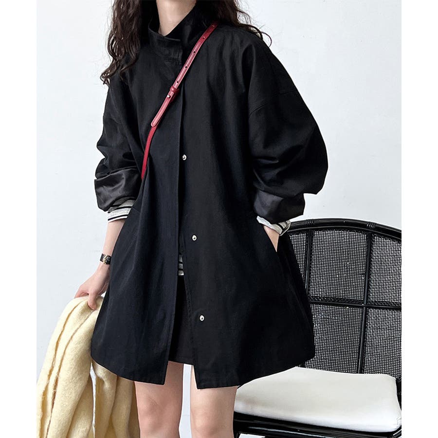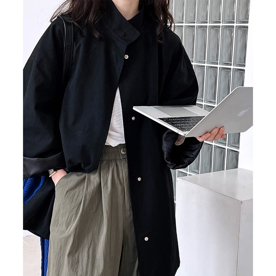 スタンドカラーがおしゃれなオーバーサイズジャケットです。コットン素材なので、肌触りも良く、軽くて着心地も抜群!お尻を隠せるロング丈デザインで、体型カバーもバッチリ。