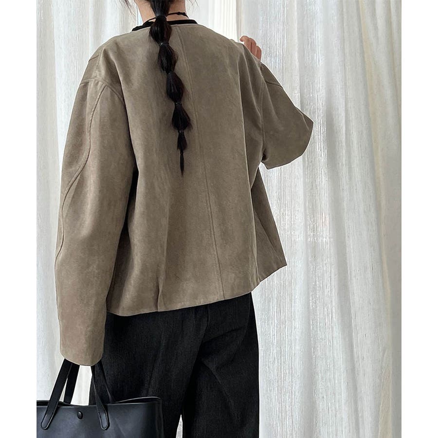 「決め過ぎない」絶妙なバランス: レザーのクールな印象がありながら、スムースレザー(表革)ほどのハードさや光沢がないため、上品でマイルドな大人カジュアルな着こなしに最適です。